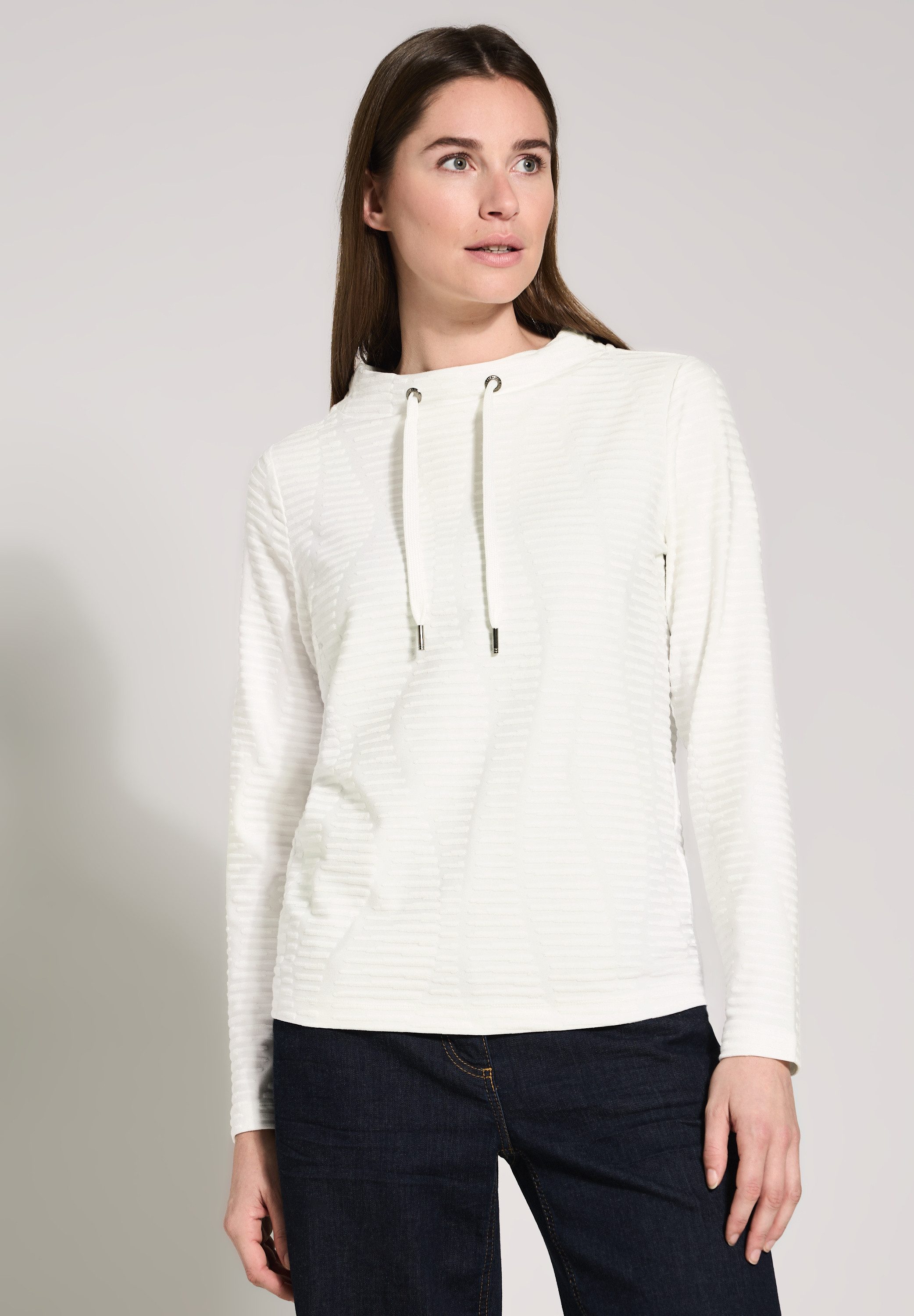 Mit dem Langarmshirt von Cecil stellst du im Handumdrehen ein neues Outfit zusammen. Mit der Kordel sieht es lässig und verspielt aus. Der Stehkragen wird nicht umgeschlagen, liegt am Hals an und ist eine Grundlage für toughe Outfits. Dieses Shirt hat einen Rundhalsausschnitt und ist hüftbedeckend sowie gerade geschnitten, sodass dein Oberkörper dezent in Szene gesetzt wird.