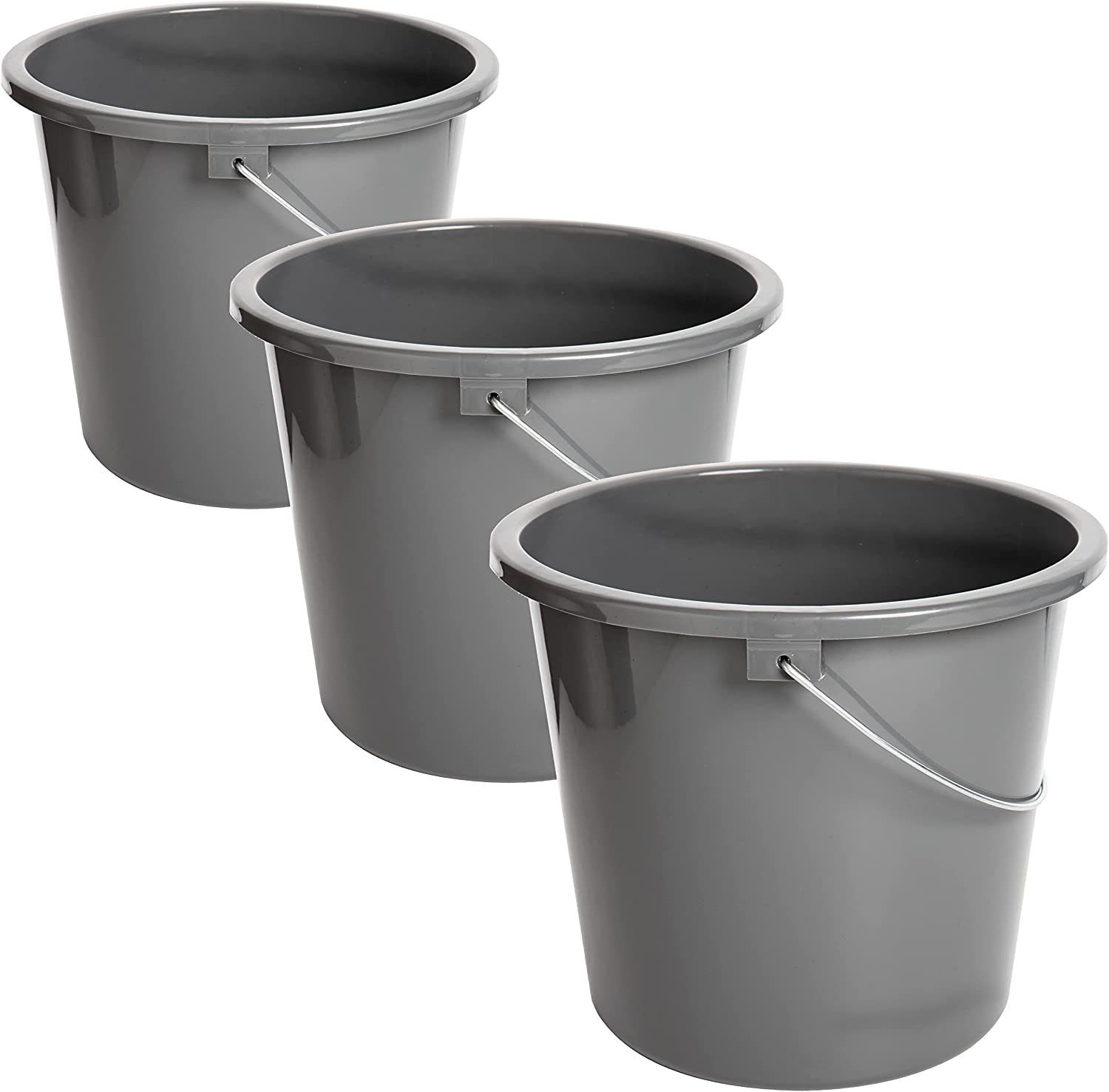 LIEFERUMFANG: 3 graue Eimer je 10 Liter. Made in EU. Perfekt für alle Reinigungs- und Haushaltsbedürfnisse!