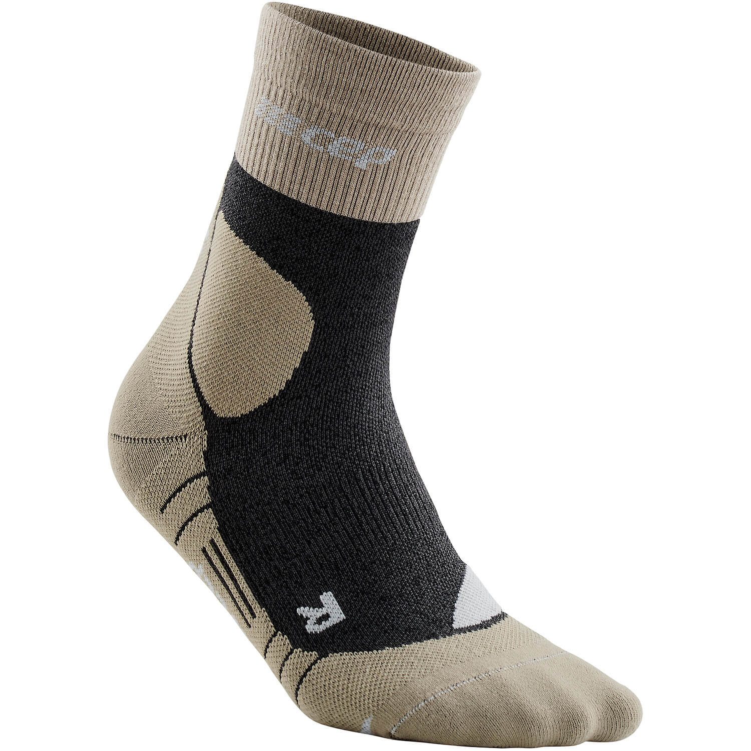 Hiking Light Merino Mid Cut Socks: Herren-Wandersocken für warme TourentageGenieß mit den Hiking Light Merino Mid Cut Socks von CEP Sportswear deine sommerlichen Wandertouren! Die mittelhohe Form eignet sich perfekt für warmes Wetter und bietet dir trotzdem eine Vielzahl von aktivierenden Benefits. Nicht sehen, aber fühlen lässt sich der ausgezeichnete Komfort dieser leichten Wandersocken für Herren – dank hochwertiger Materialien und optimierter Passform.Motiviert wandern – mit der perfekten Kombination von Merino und aktivierender Kompression - Merino stellt die optimale funktionelle Beimischung für dünne Herren-Wandersocken dar: Das Naturmaterial sorgt für Frische und nimmt eine große Menge an Feuchtigkeit auf. Dadurch bleiben deine Füße spürbar trockener. Zusammen mit der hautengen Passform reduziert das die Reibung am Fuß, was wiederum das Blasenrisiko reduziert. Damit schaffen die Hiking Light Merino Mid Cut Socks ideale Voraussetzungen für trockene und wohltemperierte Füße in Topform.Höhere Trittsicherheit durch die innovative medi Kompression - Die Kompression bewirkt nicht nur eine Aktivierung deiner Muskeln und Stabilisierung deiner Gelenke. Sie führt auch zu einer verbesserten Selbstwahrnehmung deines Körpers (Propriozeption) – in diesem Fall der Fußgelenke. Dies schlägt sich in einer erhöhten Trittsicherheit nieder, die dir vor allem in anspruchsvollem Gelände zugutekommt.Anatomisch angeordnete Polsterzonen für das Plus an Komfort - An den kritischen Stellen verfügen diese dünnen Wandersocken für Herren über integrierte Polsterzonen. Diese sorgen zum einen für eine zuverlässige Dämpfung, zum anderen für einen besseren Sitz der Wanderschuhe – und unterstützen genau dort, wo es nötig ist.Mach bei deiner nächsten Wanderung keine Kompromisse und setz auf den exzellenten Komfort der Hiking Light Merino Mid Cut Socks von CEP Sportswear!Geschlecht: HerrenGrößeninfo: III = EU-Размер 39-43, IV = EU-Размер 43-46, V = EU-Размер 46-50Einsatzgebiete: Wandern, Trekking, Hiking, Sport, FreizeitMaterialzusammensetzung: 76% Polyamid, 12% Wolle, 12% Elasthan