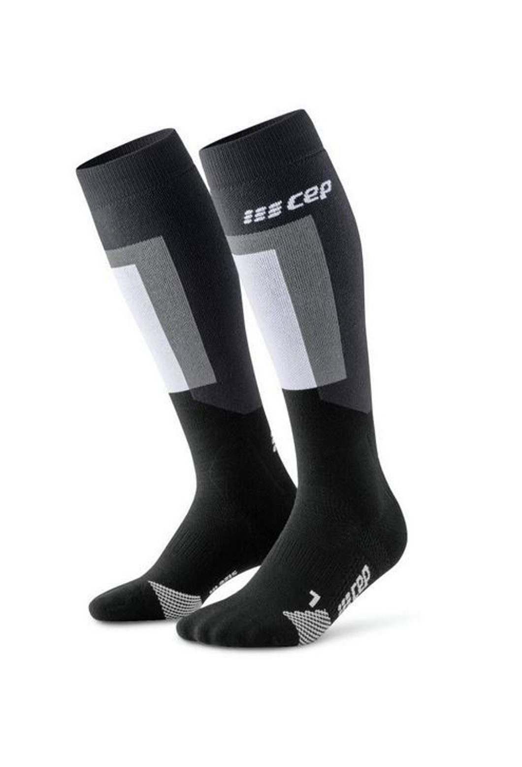 Dank cleverer Polsterungen liefern die hoch geschnittenen Thermo Ski-Socken für Damen von CEP höchsten Komfort auf der Piste. Zumal das vollverplüschte Funktionsmaterial die Füße angenehmen warm hält und dabei atmungsaktiv bleibt. Dazu kommt maximale Kontrolle im Skischuh und ein Kompressionseffekt für leichte Beine und einen Feel-Good-Effekt. Lässt du den Ski laufen, möchtest du jederzeit alles unter Kontrolle haben. Dafür besitzen die Thermosocken ihre 3D-Grid-Sohle mit ANTI-SLIP-PROFIL. Nichts rutscht, du spürst den direkten Kontakt zum Skischuh und hast maximale Kontrolle beim Skifahren. Dank des atmungsaktiven Materials entsteht zudem kein Hitzestau – auch auf intensiven Abfahrten. Mit den Thermo-Ski-Socken genießt du auch noch den Nachmittag deines Skitags in vollen Zügen. Die leichte Kompression kurbelt die Nährstoffversorgung der Muskulatur optimal an. Ein Feel-Good-Effekt entsteht, deine Beine fühlen sich leicht an. Kalte Füße stören den Spaß auf der Piste. Nicht mit den Thermo Socks. Dank des Vollplüschs ist das Thermomaterial angenehm weich und besonders warm. Das Komfortlevel erhöhen außerdem die faltenfreie Kompression der Socken in Kombination mit smarten Polsterungen an Schienbein, Knöchel und Achillessehne. Bestell die Thermo Ski Socks Tall für Damen noch heute im Onlineshop von CEP.