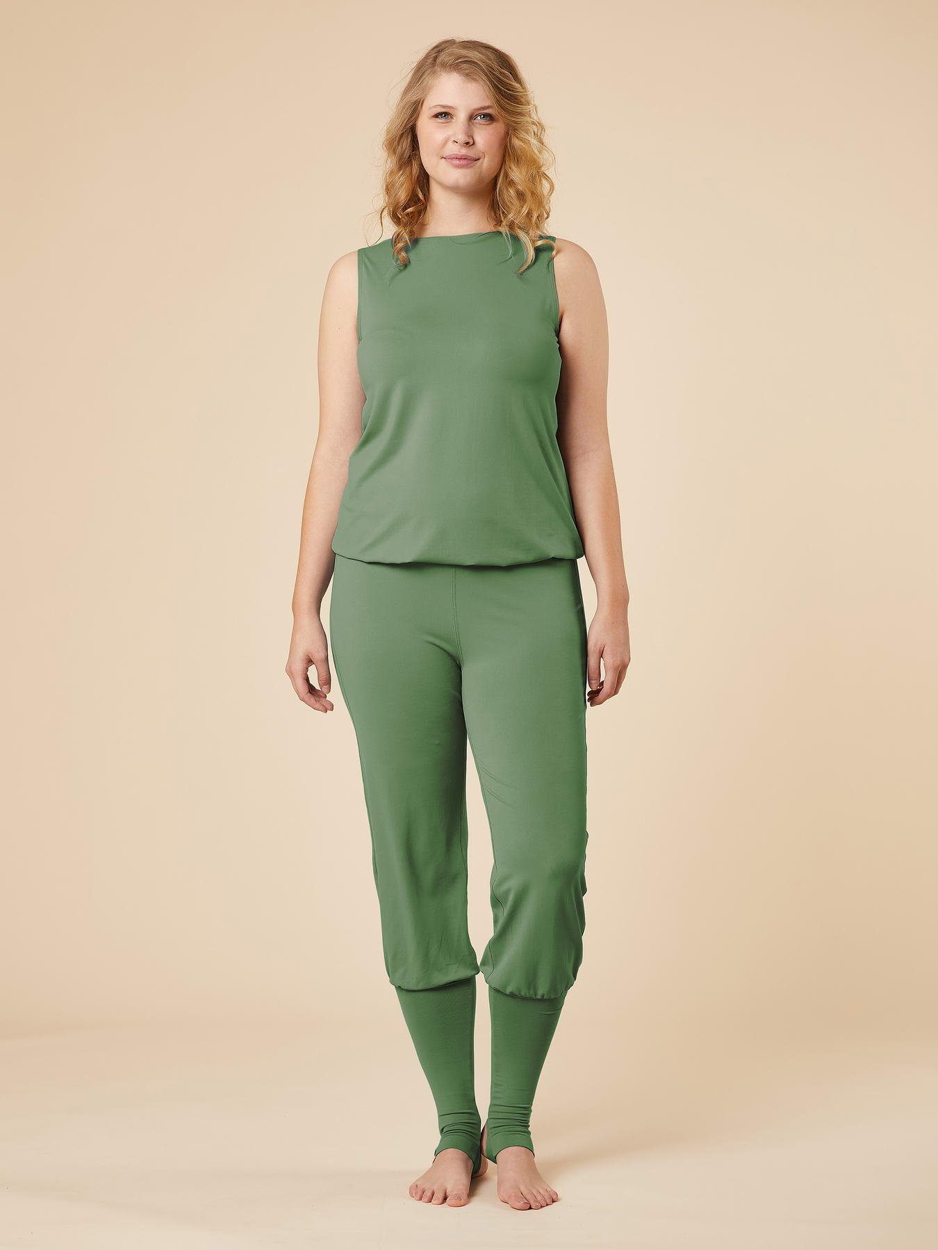 Unser Stulpen-Overall "Mahavidya" eignet sich perfekt für Yoga und Pilates, lässt sich aber auch prima zu kreativen Home- und Streetwearstyles kombinieren.