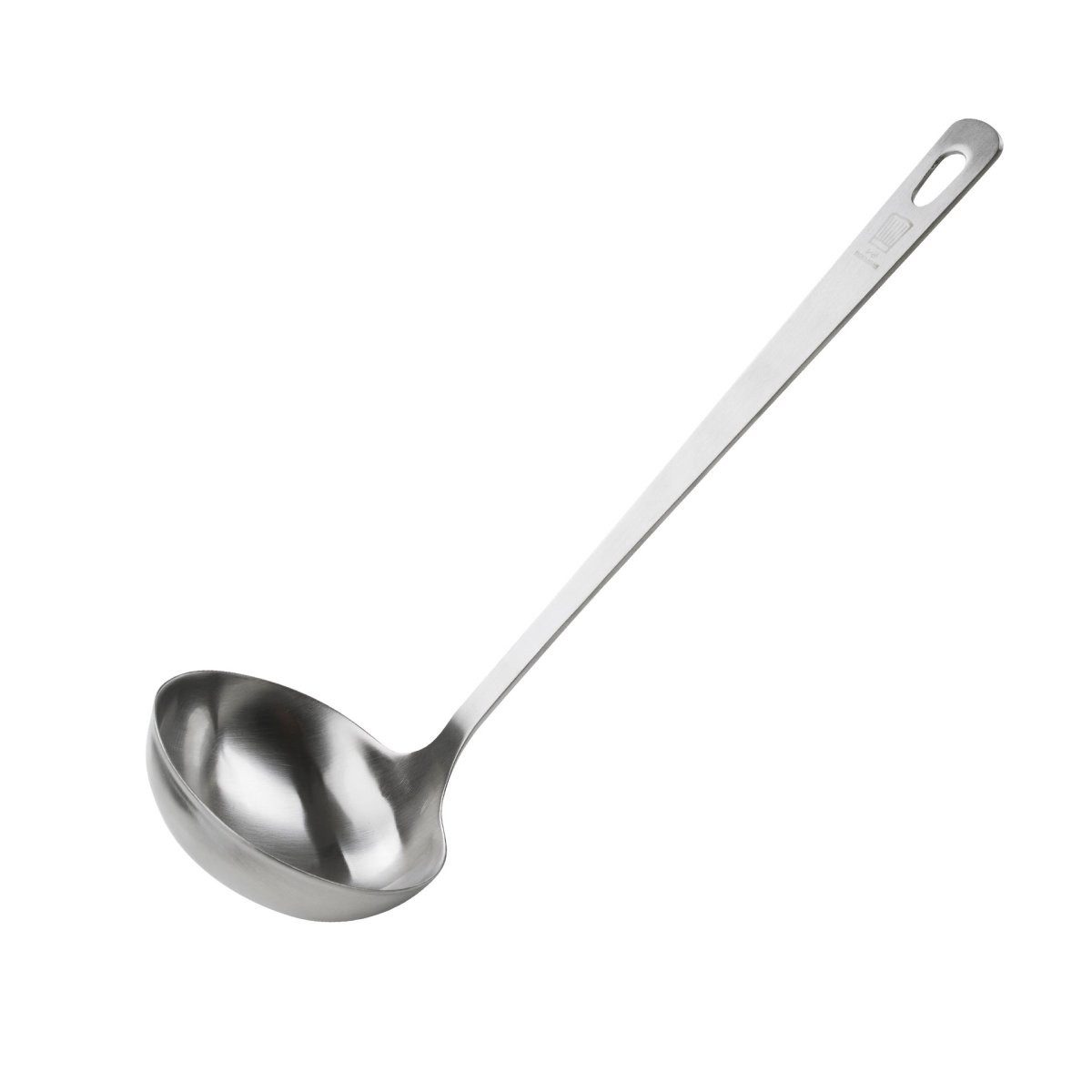 Dieser Schöpflöffel ist aus hochwertigem Edelstahl gefertigt und mit einer edlen Oberflächenveredelung versehen. Seine matte Optik sorgt für ein modernes und schickes Aussehen in deiner Küche.