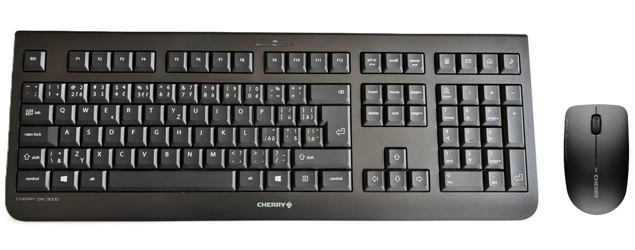 CHERRY DW 3000, Kabelloses Tastatur-Maus-Set, Tschechisches/Slowakisches Layout (QWERTZ/QWERTY), 2,4 GHz Funk, Geräuscharme Tasten, Symmetrische Maus, Schwarz