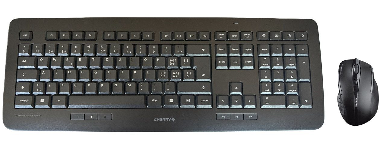 CHERRY DW 5100, Kabelloses Tastatur-Maus-Set, Schweizer Layout (QWERTZ), 2,4 GHz Funk, Plug & Play, Ergonomische Rechtshändermaus, Batteriebetrieben, Schwarz