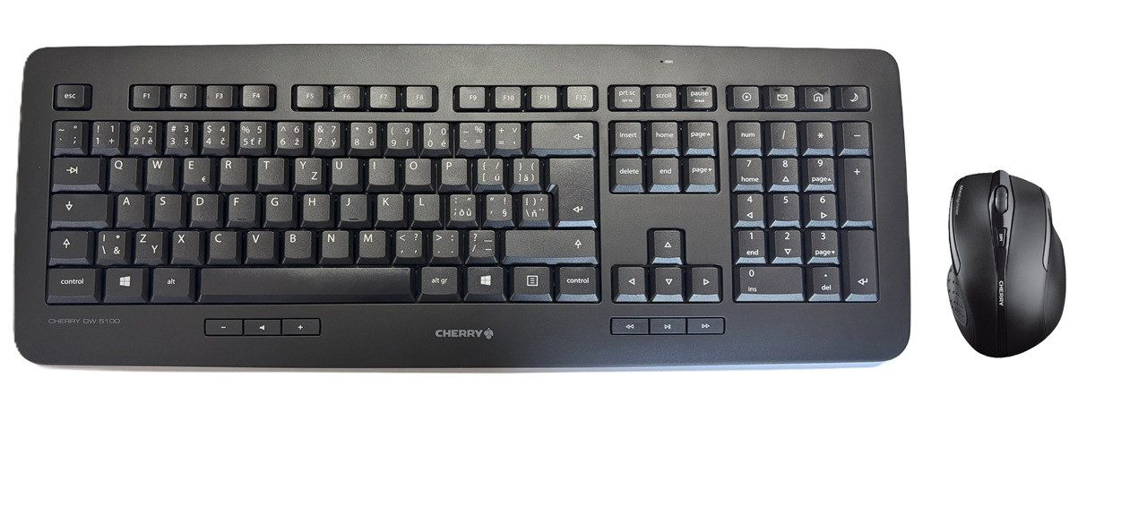 CHERRY DW 5100, Kabelloses Tastatur-Maus-Set, Tschechisches/Slowakisches Layout (QWERTZ/QWERTY), 2,4 GHz Funk, Ergonomische Maus, Batteriebetrieben, Schwarz