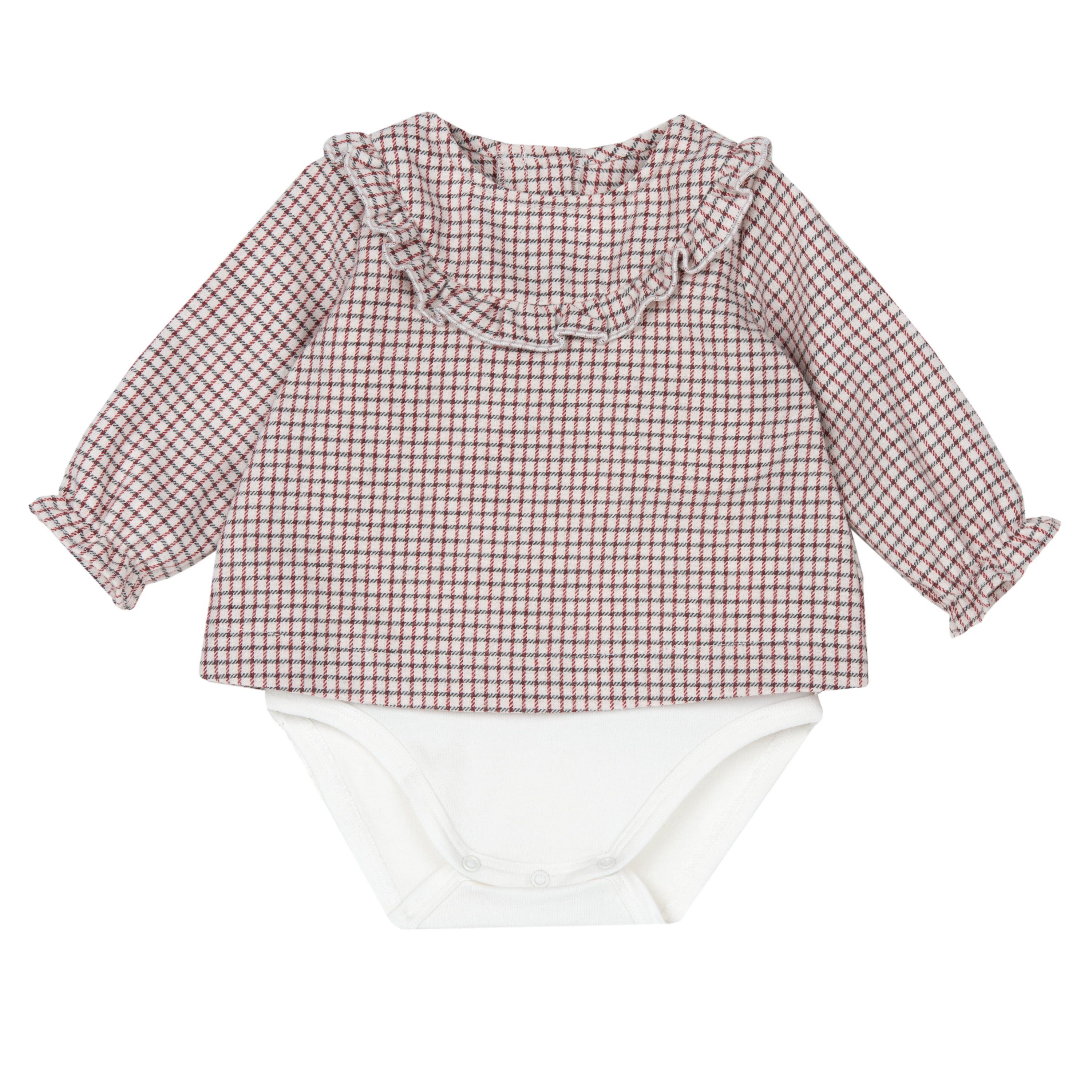 Marke: Chicco Design: Kariert mit Rüschenkragen Material: Weiche, hautfreundliche Baumwolle Verschluss: Druckknöpfe für einfaches An- und Ausziehen