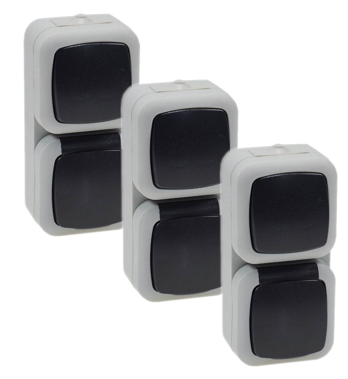 3 x Feuchtraum Kombi Steckdose Schalter vertikal