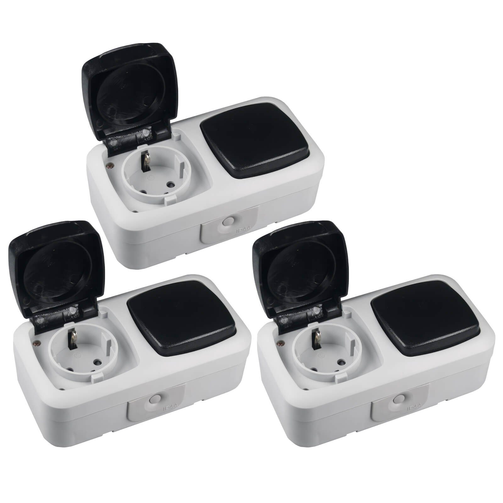 Lieferumfang | 3x Feuchtraum Schalter Steckdose Kombination |