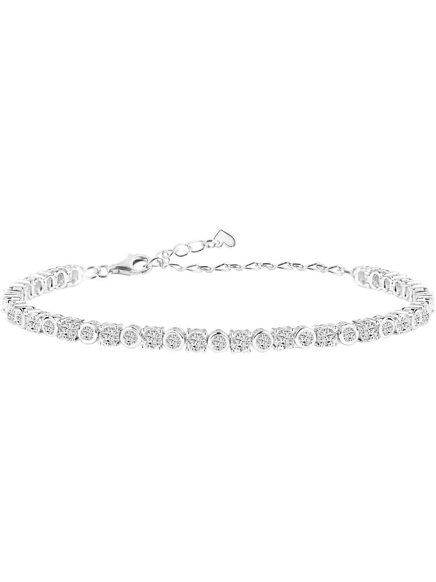 Dieses Tennisarmband von CHRIST verpasst dem Schmuckklassiker ein einzigartiges Facelift. Die funkelnde Reihe aus weißen Zirkonia darf bei dieser Legende nicht fehlen. Neu ist das spannende Wechselspiel aus 4er-Krappenfassungen und Zargenfassungen als Bett für die kleinen Lichtmagier. Ein weiteres zeitgemäßes Detail ist der Karabinerverschluss mit Verlängerung. Das i-Tüpfelchen: Mit dem gelungenen Mix aus klassisch und modern passt der Armschmuck zu lässigen, edlen und trendigen Outfits!