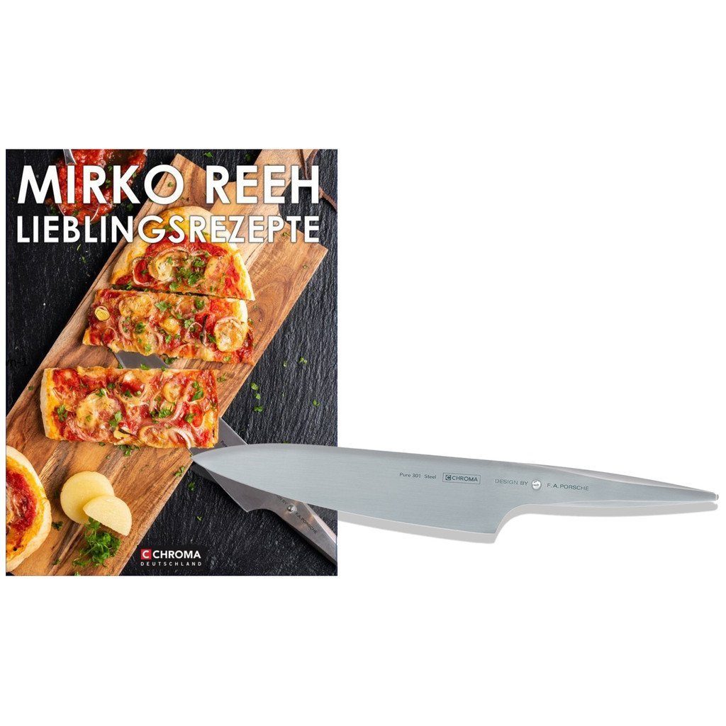 Zum Schneiden, Hacken und Putzen von großen Gemüsen wie Kürbis und Kohl sowie zur Verarbeitung von Fleisch und Fisch in hauchzarte Scheiben ist das P-18 CHROMA type 301 Kochmesser 20 cm eine gute Wahl. Der V-Schliff der 20 cm langen Klinge garantiert bestmögliche Schärfe. Das Chroma Kochmesser ist als Standardmesser in jeder Küche unentbehrlich und nicht umsonst das erklärte Lieblingsmesser des besten deutschen Kochs Harald Wohlfahrt.