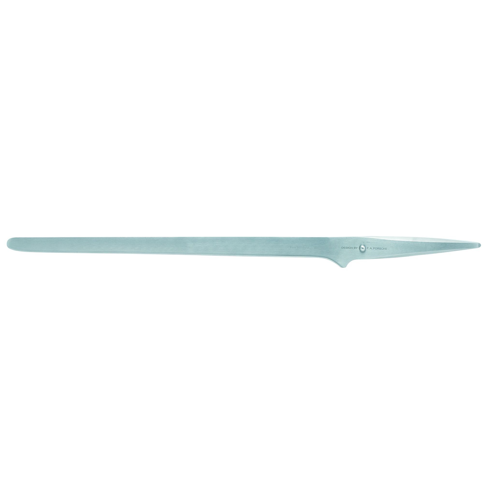 Mit dem P-26 CHROMA type 301 Schinken / Lachsmesser machen nicht nur Profiköche Eindruck. Mit der 30,5 cm langen flexiblen Klinge bearbeiten auch private Grillmeister ganz lässig das Spanferkel auf ihrer nächsten Gartenparty. Auch Lachs und große Schinkenstücke können mit der P-26 in filigrane Scheiben geteilt werden. Das P-26 CHROMA type 301 Schinken / Lachsmesser eignet sich auch als Tranchiermesser.