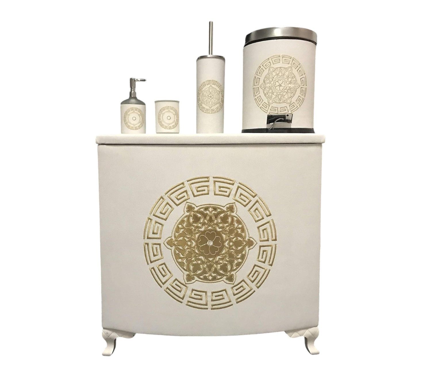 Lieferumfang | 1x Wäschekorb, 1xToilettenbürste, 1x Seifenspänder, 1x Zahnbürstenhalter, 1x Mülleimer |
