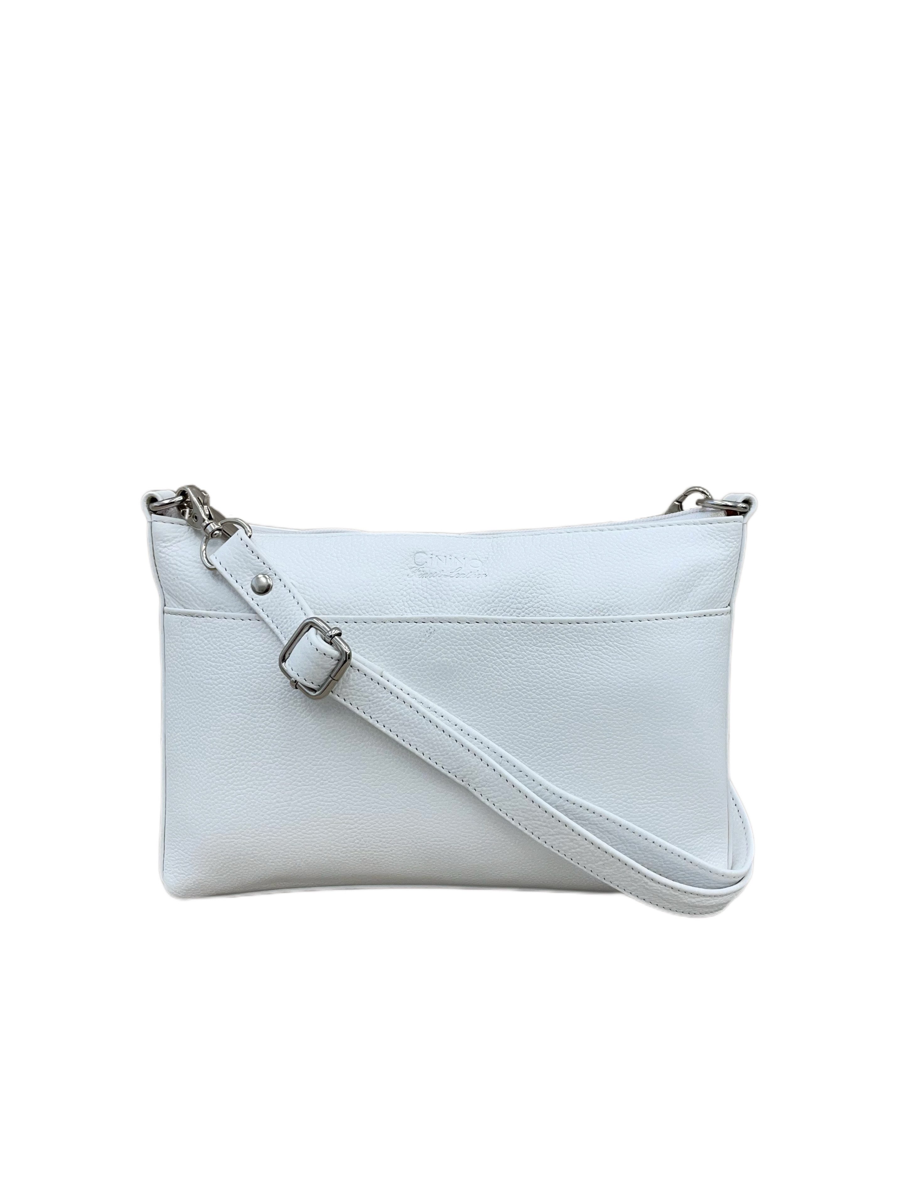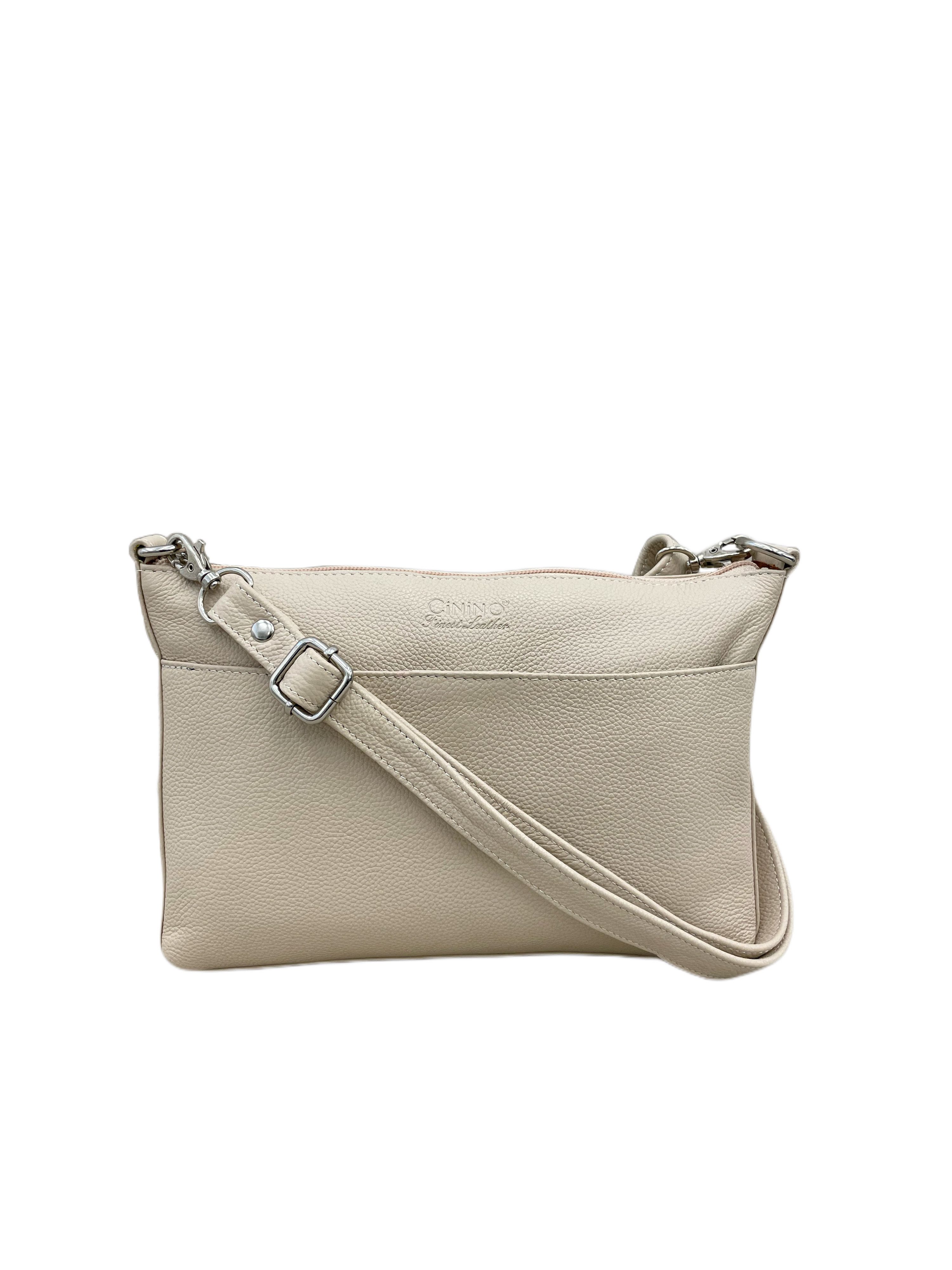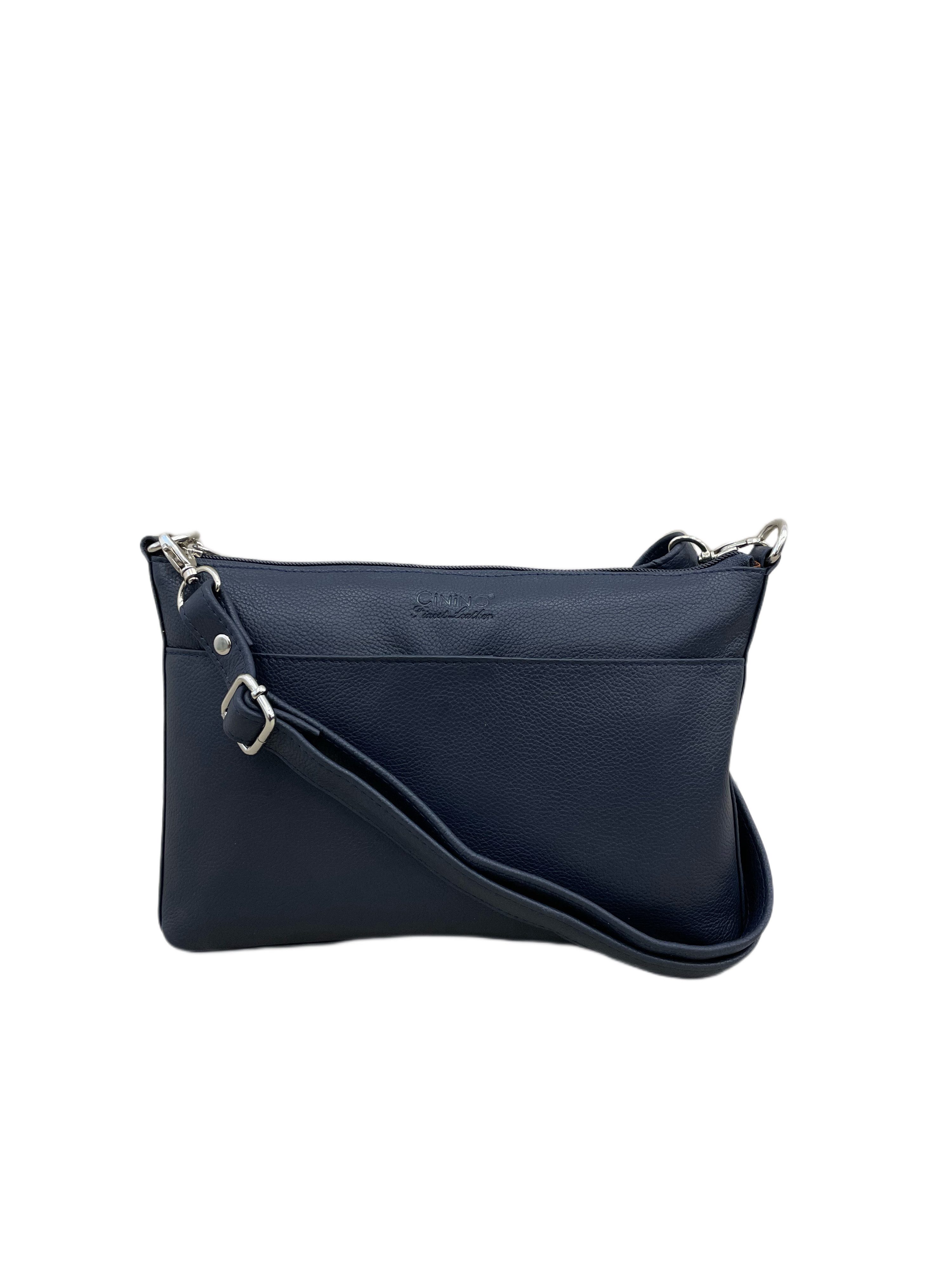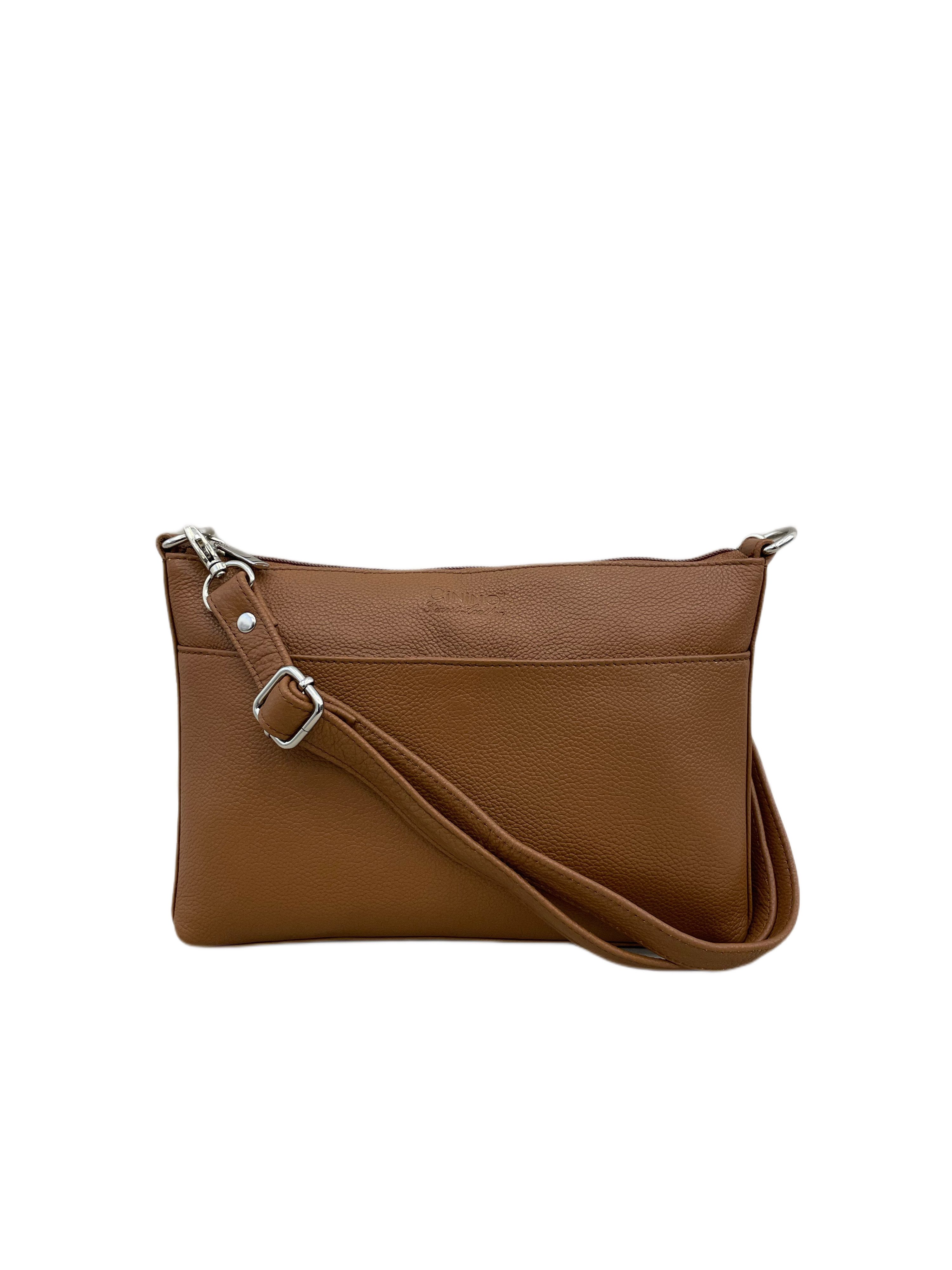 Außenausstattung | Vortasche mit Magnet verschlossen Hauptfach mit Reißverschluss verschlossen Reißverschlussfach auf der Taschenrückseite abnehmbarer verstellbarer Lederriemen |