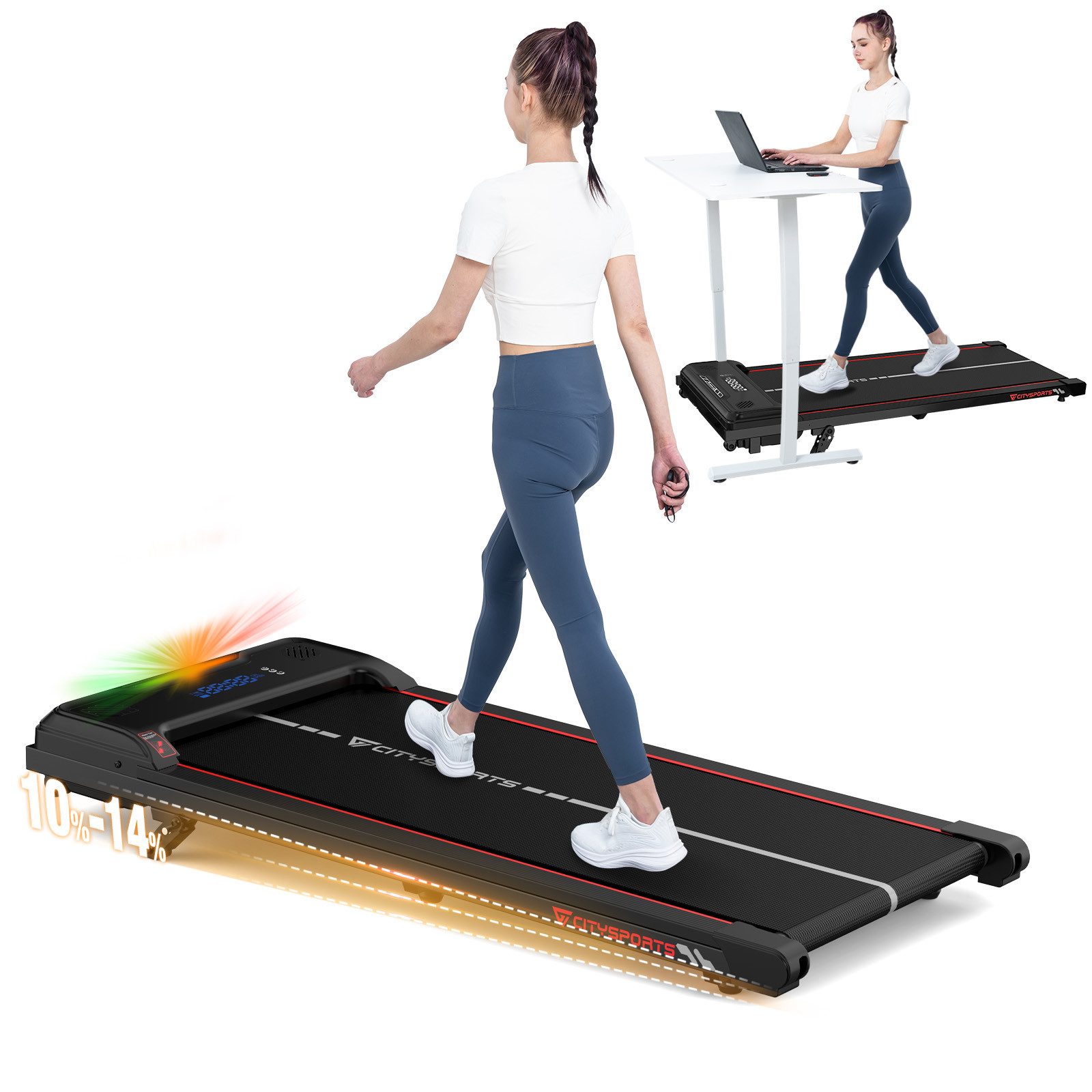 Unser tragbares Laufband ist leicht und hat zwei Vorderräder für eine einfache Bewegung. Es erfordert keine Installation, es wird vormontiert geliefert und seine kompakte Размер macht es einfach zu lagern, so dass es auf einem Sofa, unter einem Bett oder an einer Wand platziert werden kann, und das kleine Laufband hat Löcher für die Fernbedienung reserviert, so dass Sie sich keine Sorgen über die Platzierung machen müssen.
