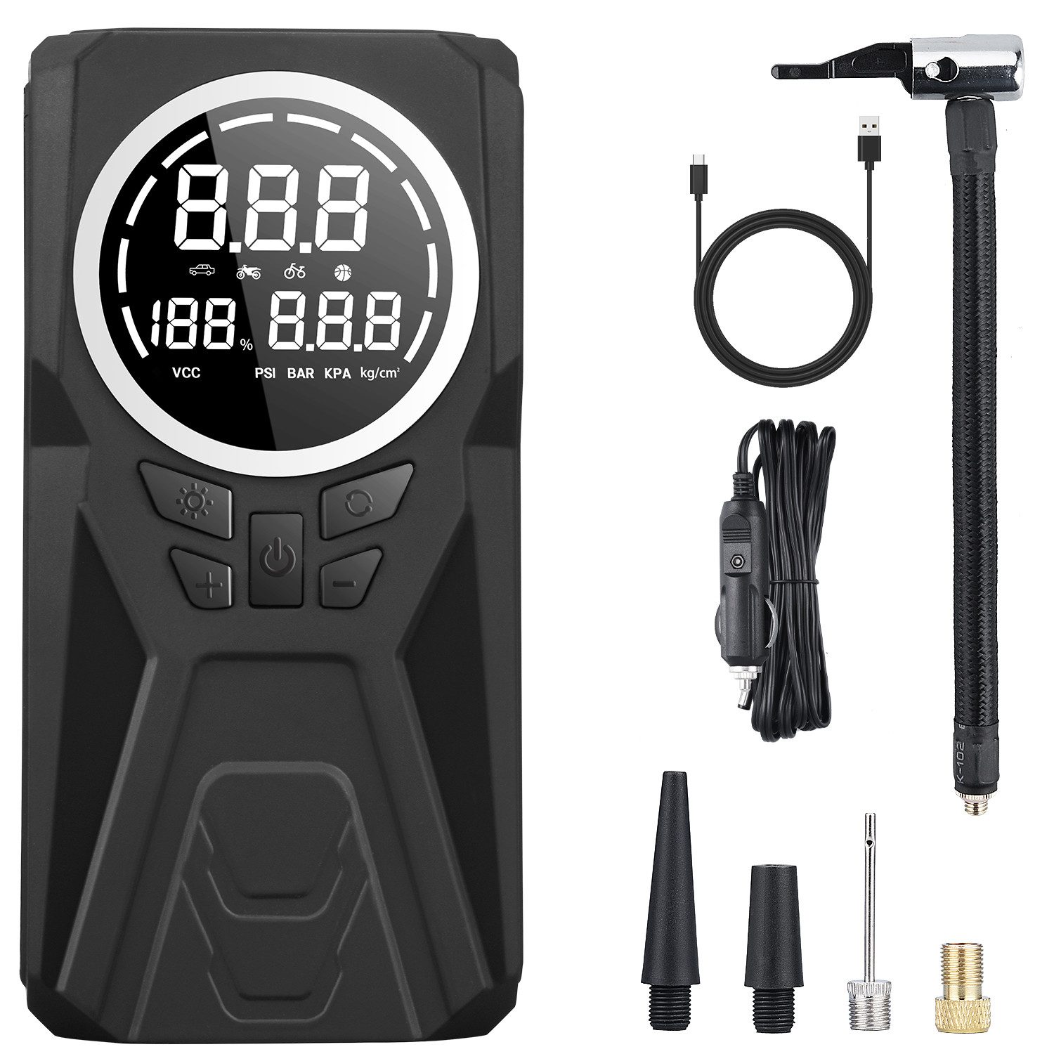 Diese professionelle Luftpumpe ist mit 4 Umrüst Luftdüsen (einschließlich Fahrrad Luftdüse, Schwimmring Spezialdüse und Ballnadel) ausgestattet, mit 5 intelligenten voreingestellten Modi und ist genau auf Auto , Motorrad , Fahrradreifen, verschiedene Ballausrüstungen und aufblasbares Spielzeug abgestimmt.