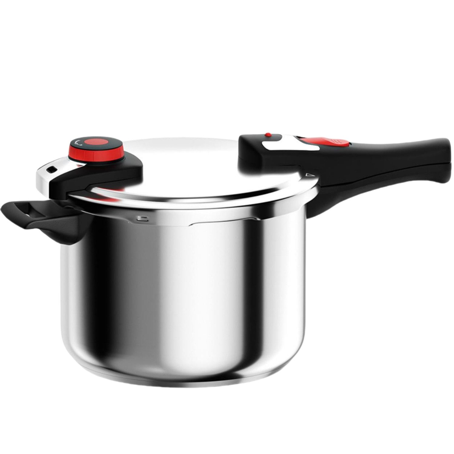 Das Gehäuse dieses Schnellkochtopfs besteht aus hochwertigem Edelstahl 304 und sorgt so für optimale Kochergebnisse und eine lange Nutzungsdauer. Die seitlichen Griffe sorgen für einen sicheren Halt und eine sicherere Nutzung.