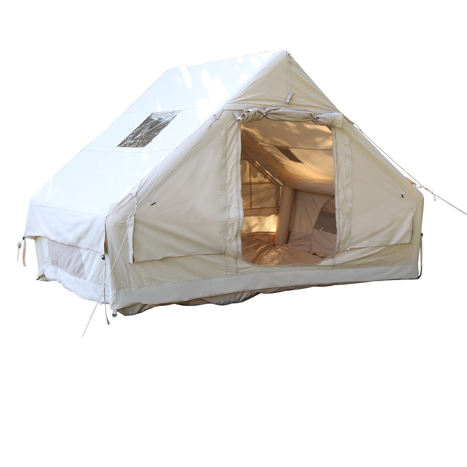 Das Zelt ist aus 420D hochdichtem Oxford-Gewebe gefertigt, langlebig und abriebfest, die innere Schicht aus umweltfreundlicher PVC-Beschichtung ist wasserdicht und feuchtigkeitsbeständig und hält den Innenraum trocken. Schnell aufblasbares Design für bügelfreie Installation, einfach zu bedienen und zeitsparend. Die Stützstruktur der Luftsäule ist stabil und windbeständig. Eingebautes elektrisches Ablassventil, Ablassen der Luft mit einem Knopfdruck, kompakt und leicht gefaltet, einfach zu tragen, geeignet für eine Vielzahl von Outdoor-Aktivitäten. Unabhängiger Türvorhang, Lüftungsfenster, Innenzelthaken und andere Funktionen sind vollständig, U-Form gegenüberliegende Tür Design, bessere Belüftung. Ausgestattet mit Schornsteinöffnung und Anti-Fouling schwarze Aufbewahrungstasche, praktisch und bequem.