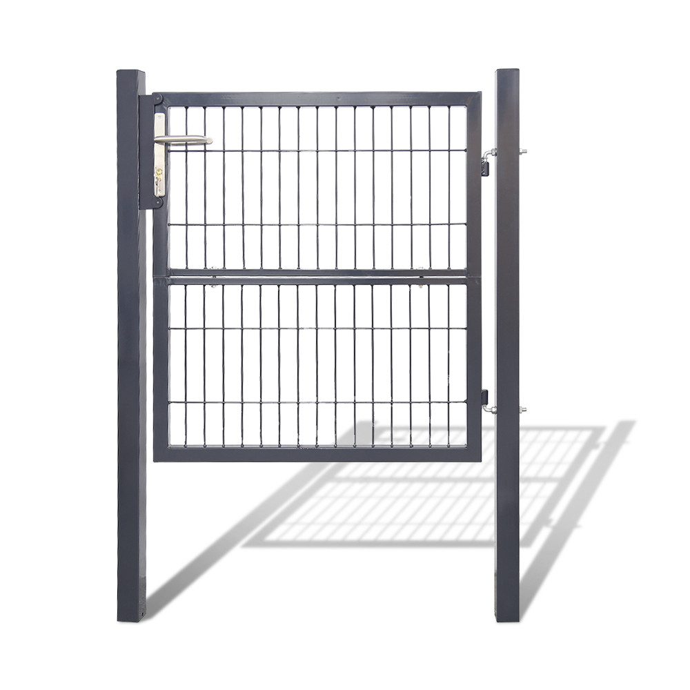 Das Gartentor ist mit stabilen Quadrat-Pfosten, Schließzylinder aus Kupfer.Rohrrahmenschloss für Profilzylinder und verstellbaren Scharnieraufhängungen ausgestattet.