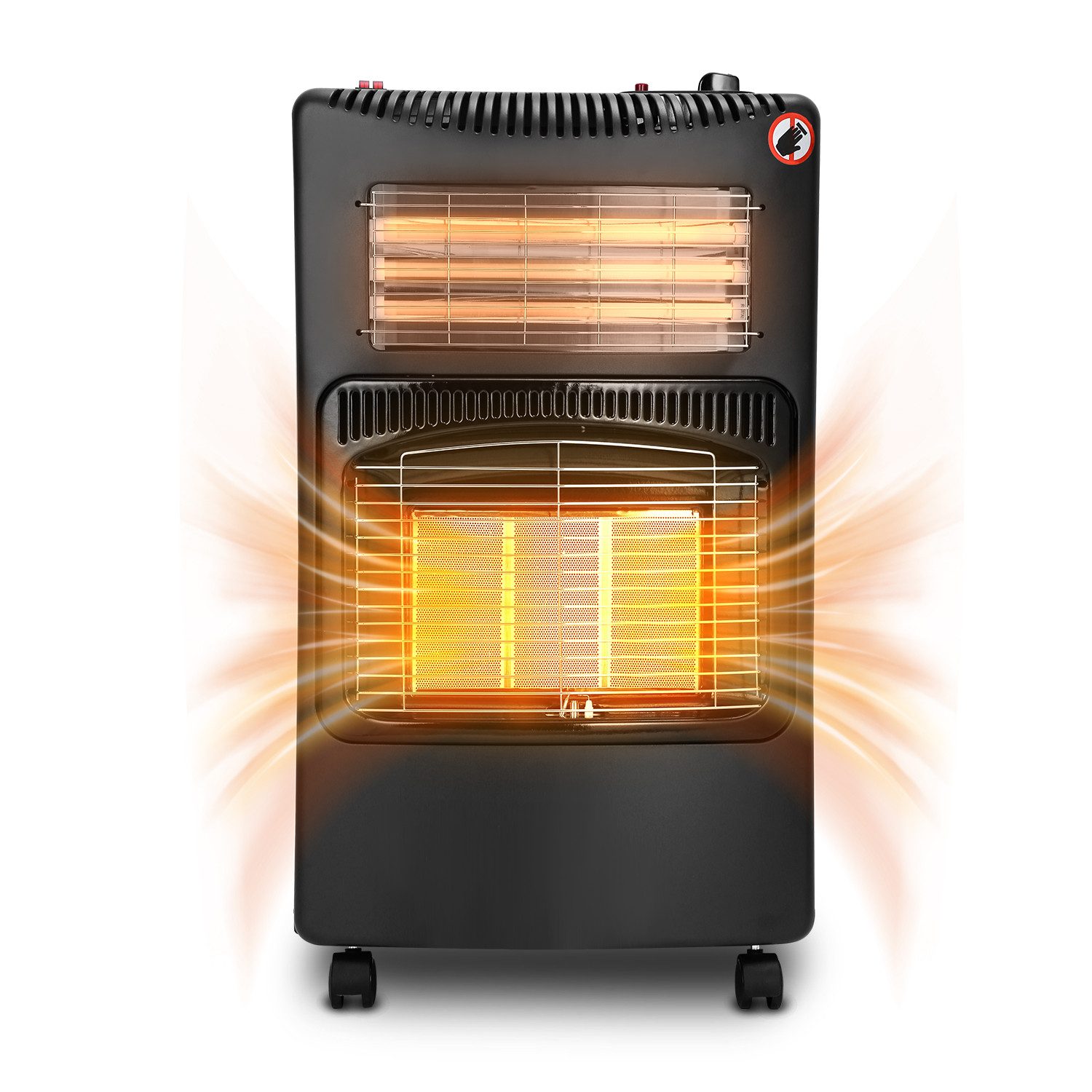 Starke Heizleistung. Wenn der Winter naht, ist unser Gasheizung für innenräume die ideale Wahl. Er bietet drei einstellbare Heizstufen (1300/2750/4200 W) und verteilt die Wärme gleichmäßig. Er kann gleichzeitig mit der elektrischen Heizfunktion verwendet werden und sorgt so für eine kontinuierliche und effiziente Wärmeabgabe. Ideal für Räume von 20 bis 60 Quadratmetern.