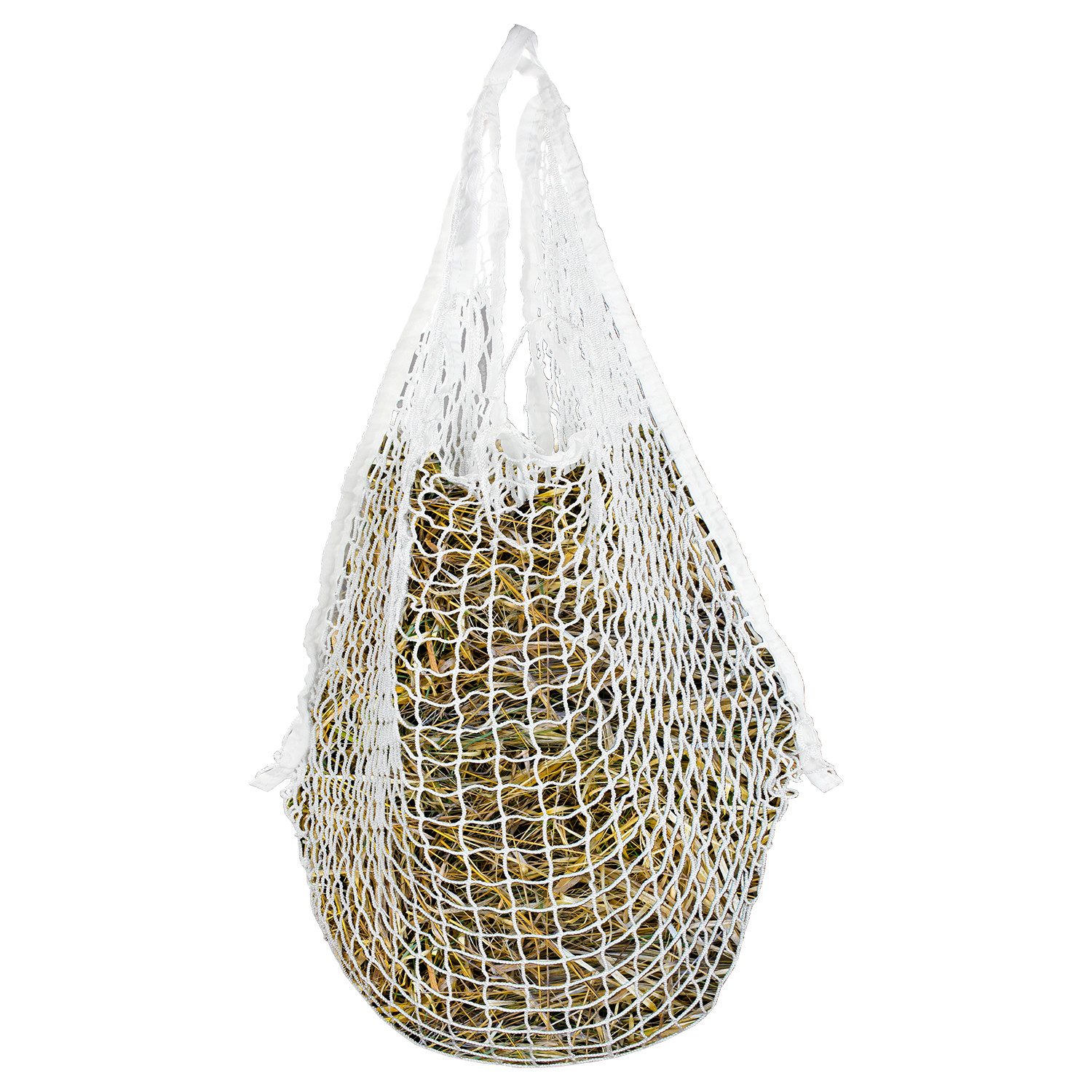 Sehr einfache Befüllung mit der großen Öffnung, die mit einem starken Seil geschlossen wird; Sie können das Heunetz auf der passenden Höhe hängen und das Pferd kann bequemer fressen.