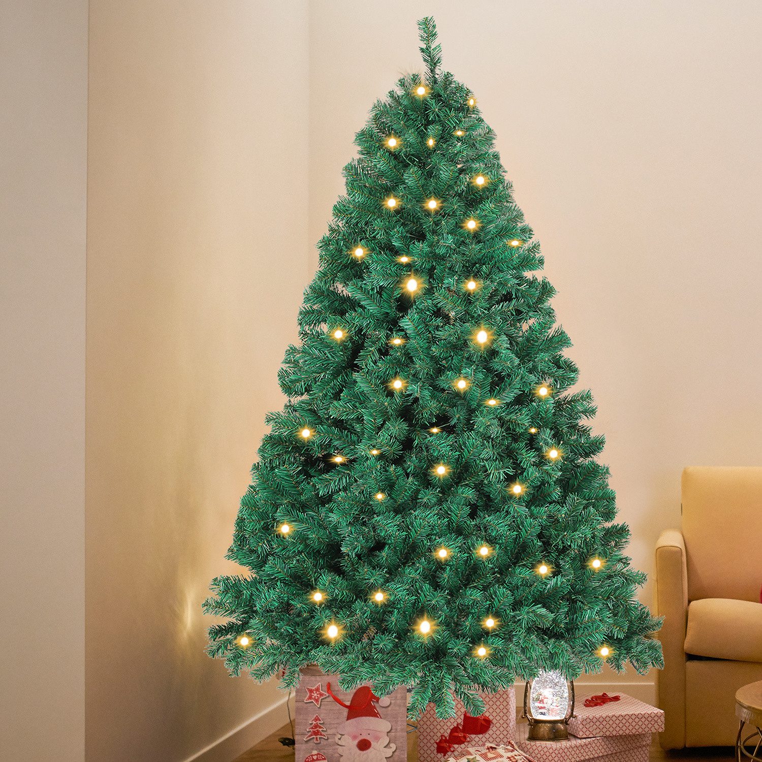 Tauchen Sie ein in die Freude der Weihnachtszeit mit unserem automatischen Zweige Weihnachtsbaum. Entworfen, um die Magie von Weihnachten in Ihr Zuhause zu bringen, verfügt dieser Baum über automatische Zweige, die sich mühelos durch äußere Kraft öffnen. Sie können jeden Zweig individuell biegen und formen, um die perfekte Baumstruktur zu erreichen. Um eine festliche Atmosphäre zu schaffen, ist unser Baum mit LED-Lichterketten ausgestattet, die eine charmante und funkelnde Atmosphäre schaffen. Ein atemberaubendes Zentrum Ihrer Weihnachtsdekoration.