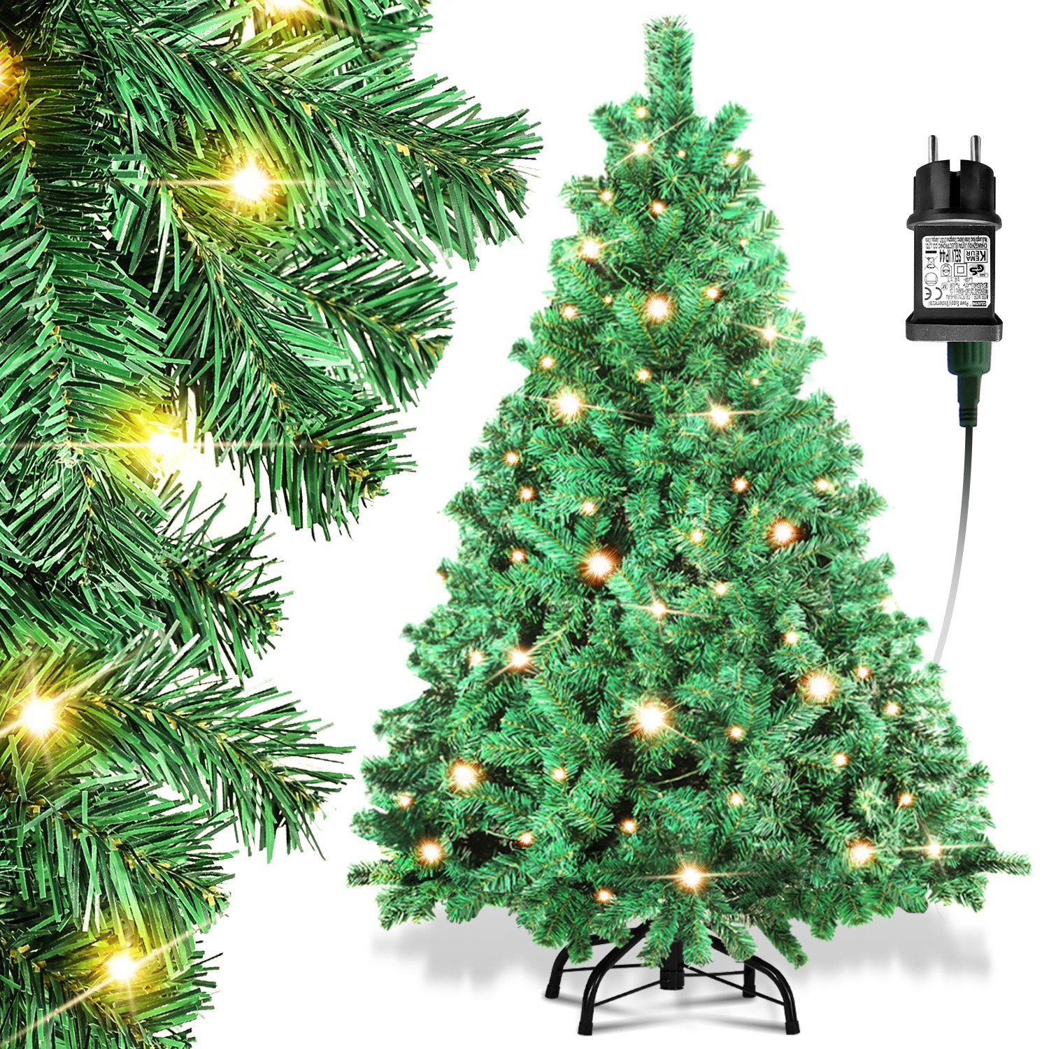 Künstlicher Weihnachtsbaum mit warmweißen LED-Lichterketten.