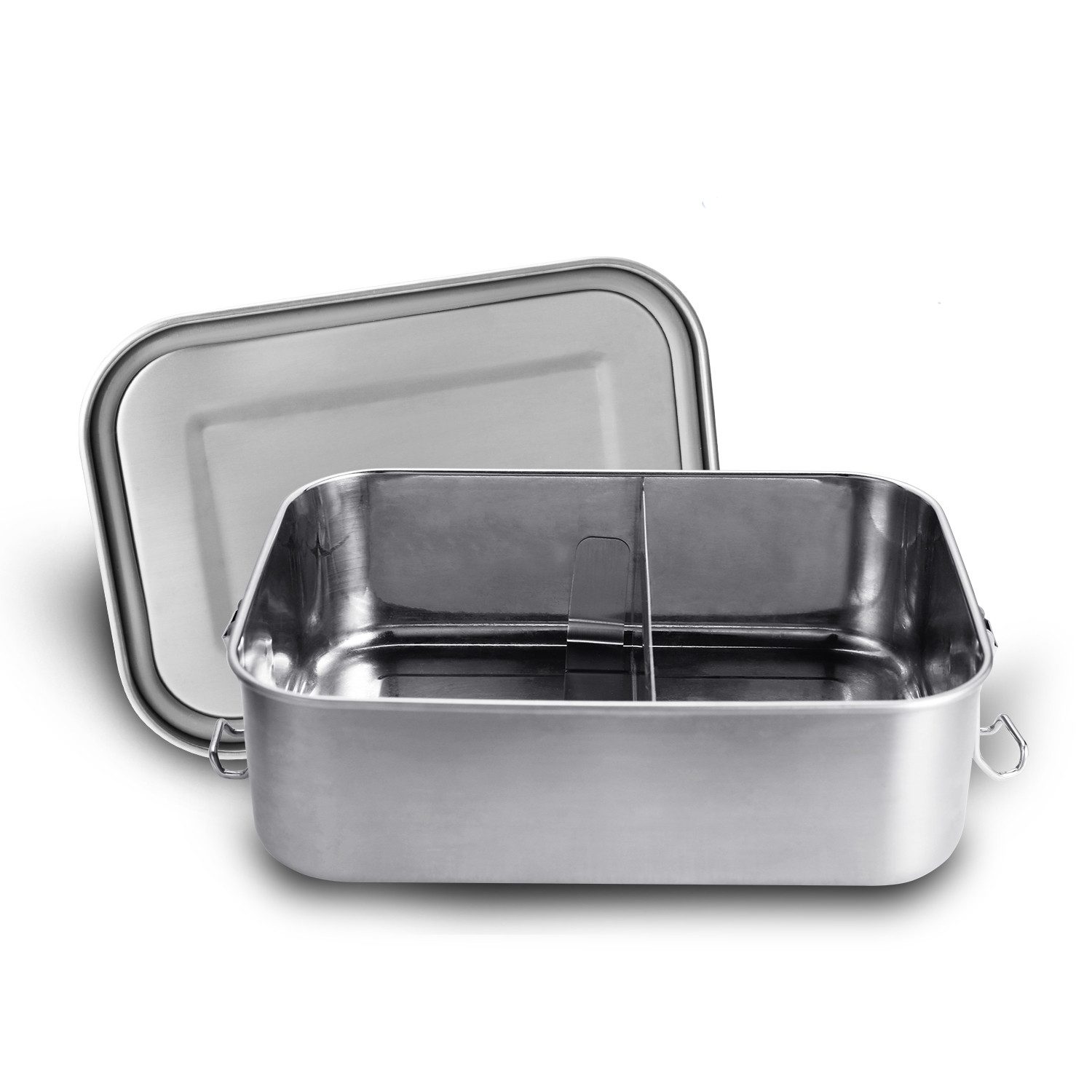 Feines Essen wird am besten in Lunchbox aus Edelstahl aufbewahrt. Es besteht aus hochwertigem 304 Edelstahl und ist die beste Brotdose für die Aufbewahrung gesunder Lebensmittel. Es ist frei von Kunststoffen, BPA und Weichmachern, ideal für Kinder sowie Erwachsene und bietet ausreichend Platz für Brot, Obst, Gemüse, Kekse oder Snacks.