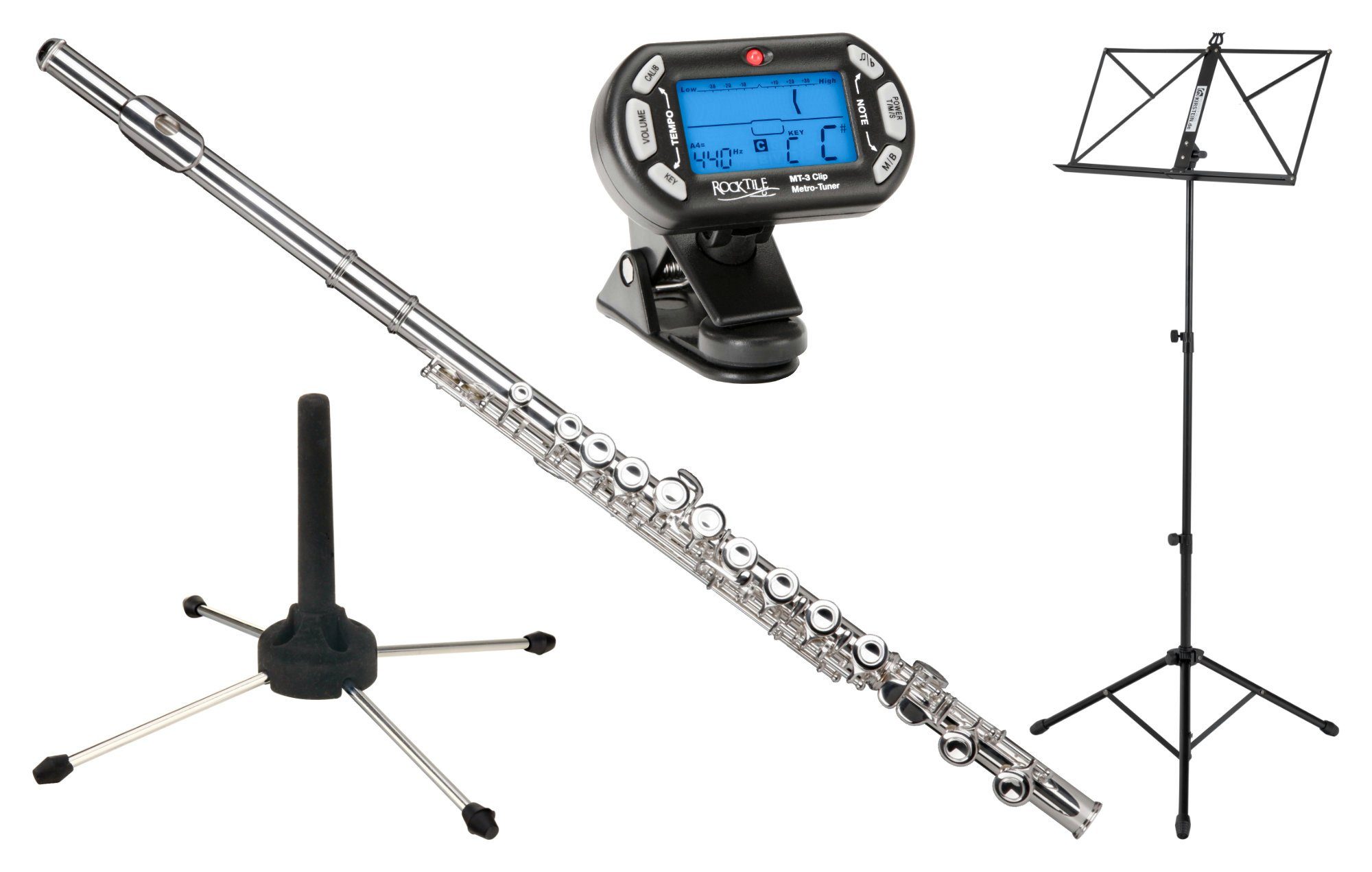 Lieferumfang | 1x Querflöte 1x Etui 1x Wischerstab 1x Metronom/Tuner 1x Notenständer mit Tasche 1x Querflötenständer |