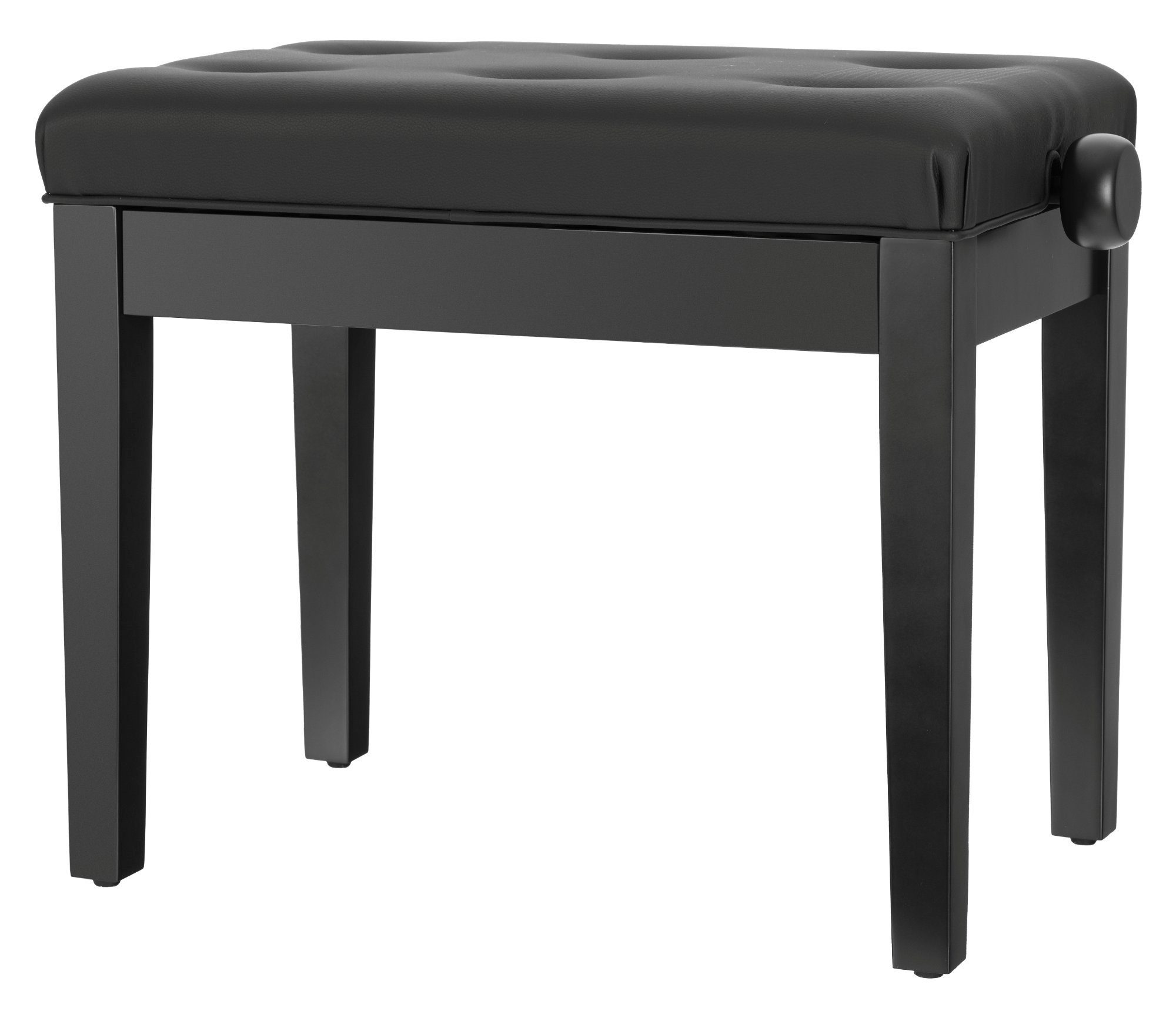 Die stabile Verbindung der Füße mit dem Rahmen und die präzise Hebemechanik heben diese schöne Pianobank deutlich von anderen Bänken dieser Preisklasse ab. Verstellbare Gummifüße an der Unterseite gleichen Bodenunebenheiten aus und bewahren den Fußboden vor versehentlichen Kratzern.