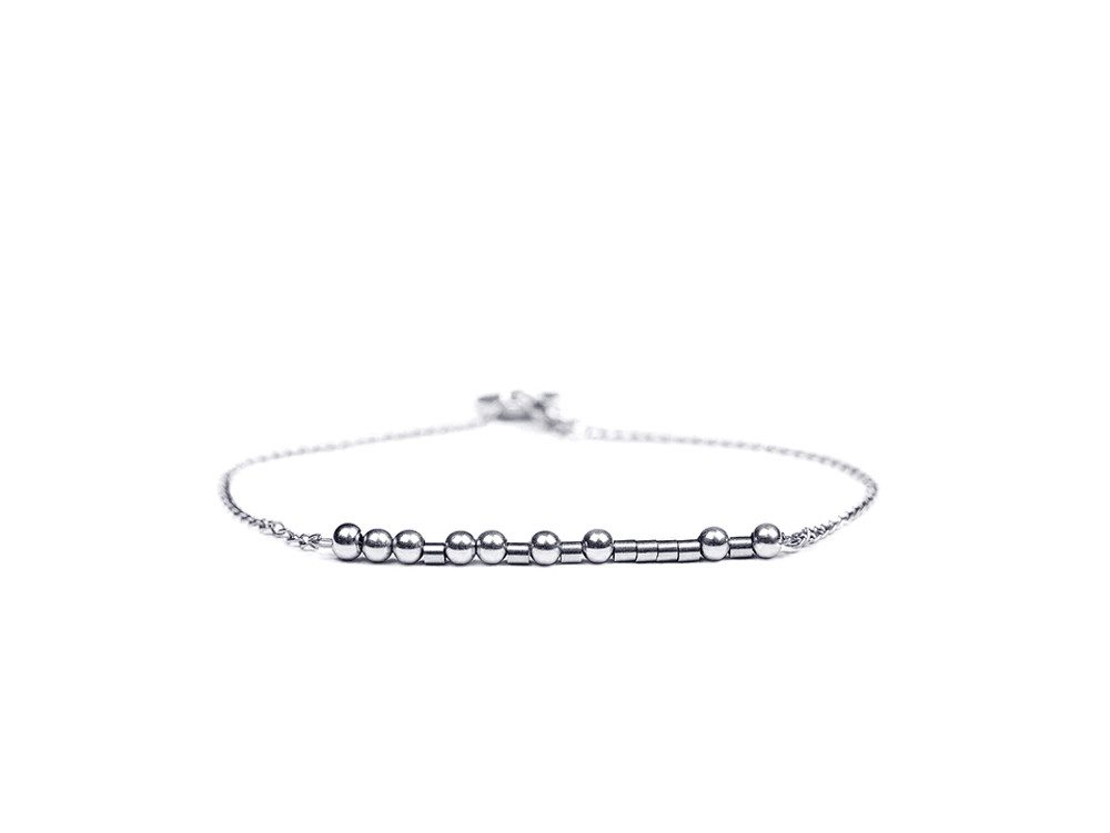 Dieses 'Morsecode' Armband ist ein eleganter Blickfang in dem sich nicht nur ein cooles Design, sondern auch eine ganz persönliche Botschaft versteckt. Mit diesem Schmuckstück haben Sie etwas ganz spezielles- etwas einzigartiges, denn auf den ersten Blick fällt der Code nicht auf und ist nur mit der mitgelieferten Legende lesbar.