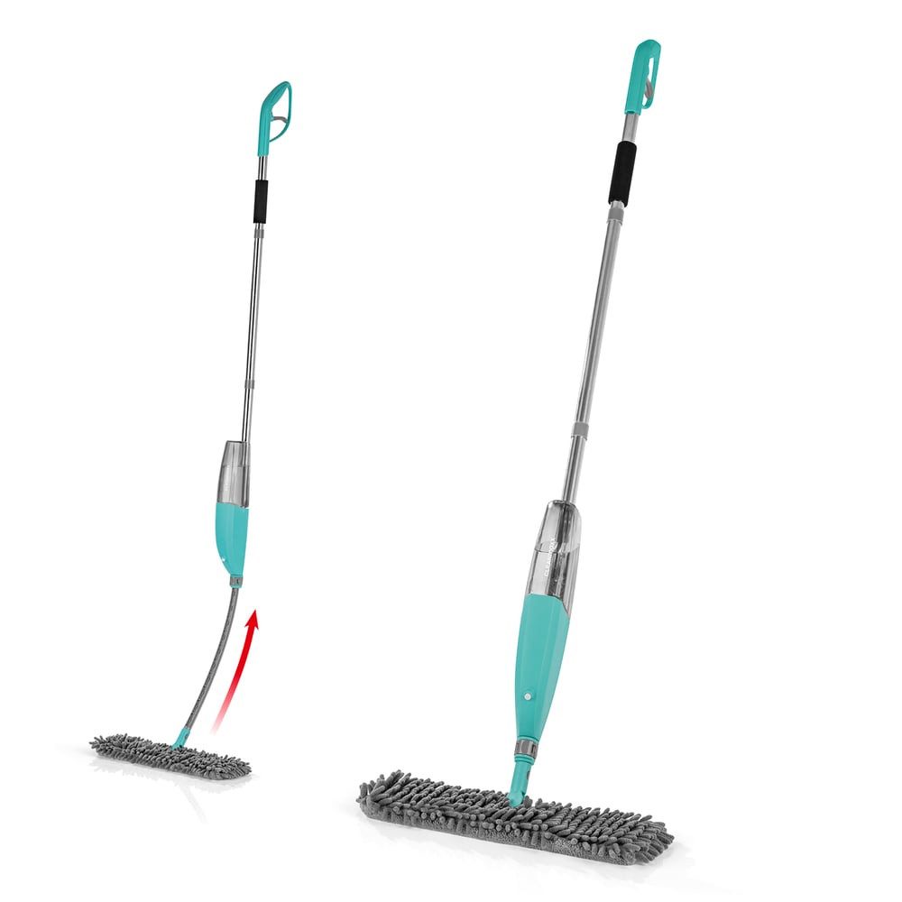 Der drehbare Moppkopf mit cleverer Wendefunktion erledigt den Rest. Sie brauchen nur den Wassertank zu befüllen und den flexiblen Teleskopstiel auf die von Ihnen gewünschte Длина (bis zu 168 cm) auszuziehen. Mit der integrierten Sprühfunktion dosieren sich Flüssigkeiten wie von selbst, womit der CLEANmaxx Spray-Mopp mit Wendefunktion auch für empfindliche Böden geeignet ist. Nun können Sie schnell & einfach Ihr gesamtes Zuhause mit der Mikrofasertuch-Seite wischen – für eine noch hygienischere Reinigung kann Reinigungs- oder Desinfektionsmittel hinzugefügt werden.