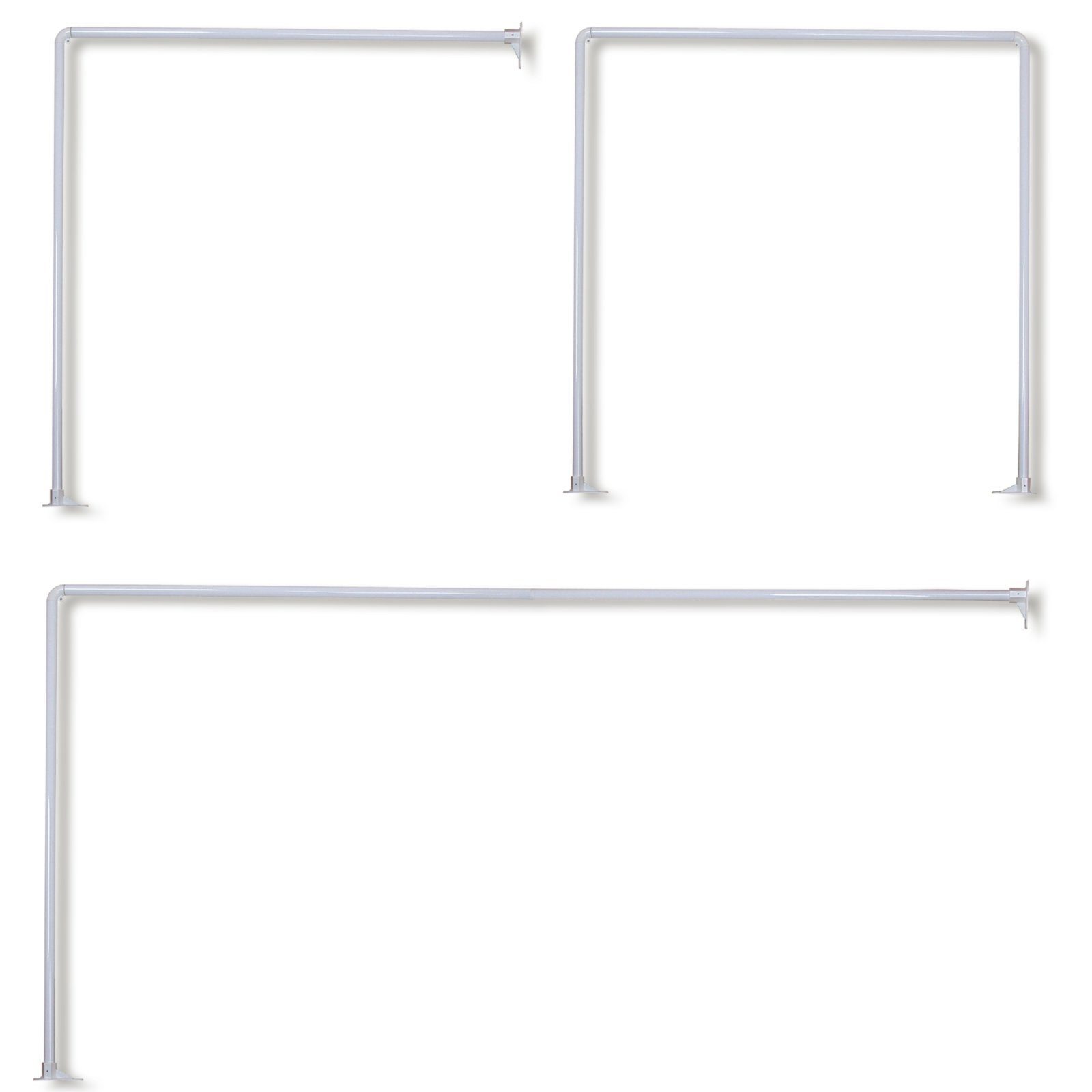 • Lieferumfang | 3x Duschstange (weiß) | 2x Winkel (Kunststoff weiß) | 1x Verbinder (Kunststoff weiß) | 2x Wandhalter (Kunststoff weiß) | Befestigungsmaterial |