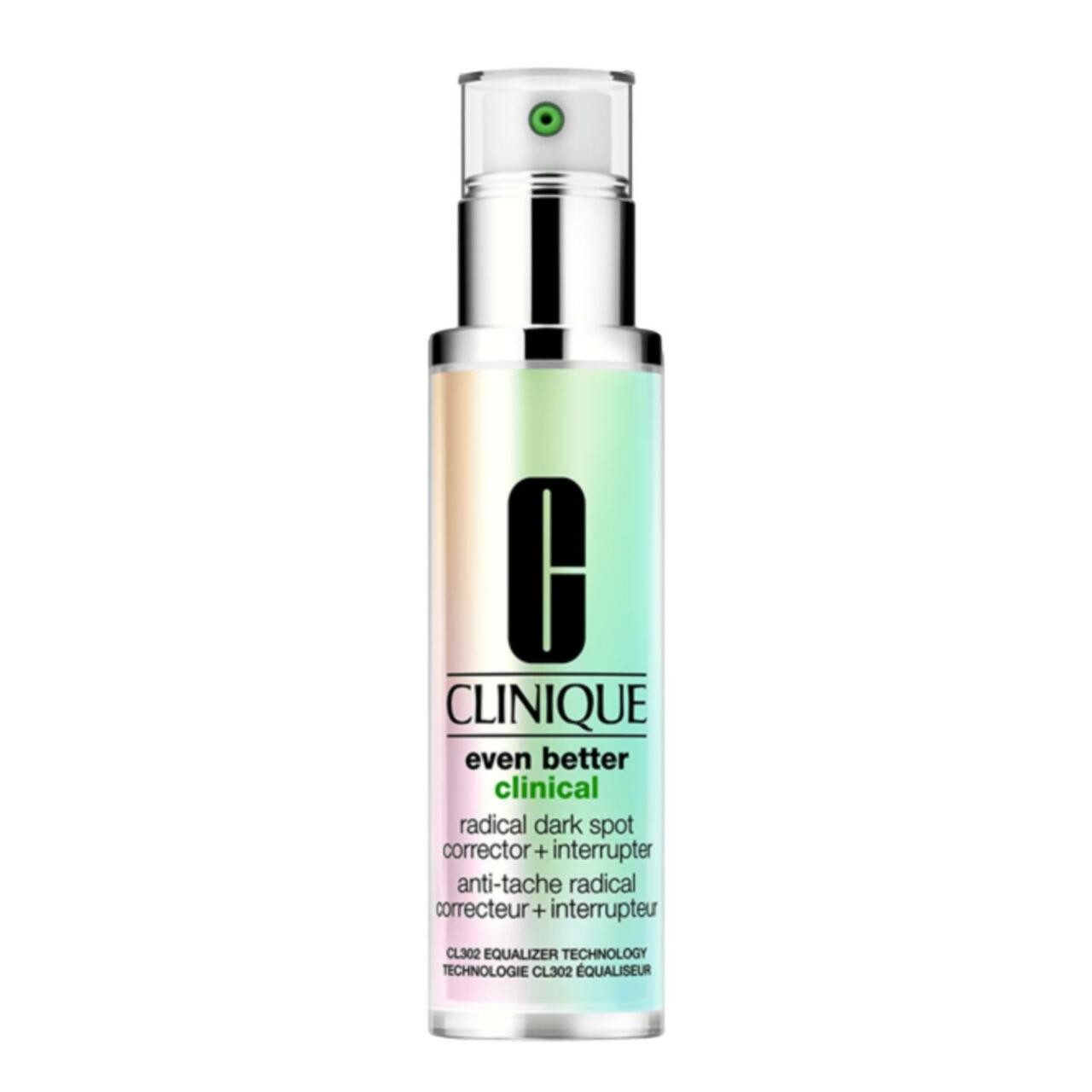 Der Even Better Clinical Radical Dark Spot Corrector + Interrupter verbessert das Erscheinungsbild von dunklen Flecken genauso wie von Aknenarben und Altersflecken. Das Geheimnis liegt in der innovativen Formel mit der von Clinique patentierten „CL302 Equalizer“-Technologie und dem „Damage Radierer“, einem speziellen Aufhellungsmolekül, in besonders hoher Konzentration - so erzielt das Serum Resultate, die begeistern, ohne die Haut zu irritieren. Zusätzlich wirkt eine kraftvolle Mischung aus reizlindernden und beruhigenden pflanzlichen Wirkstoffen umweltbedingten Hautschäden und Irritationen entgegen, die zu neuen Verfärbungen führen können.