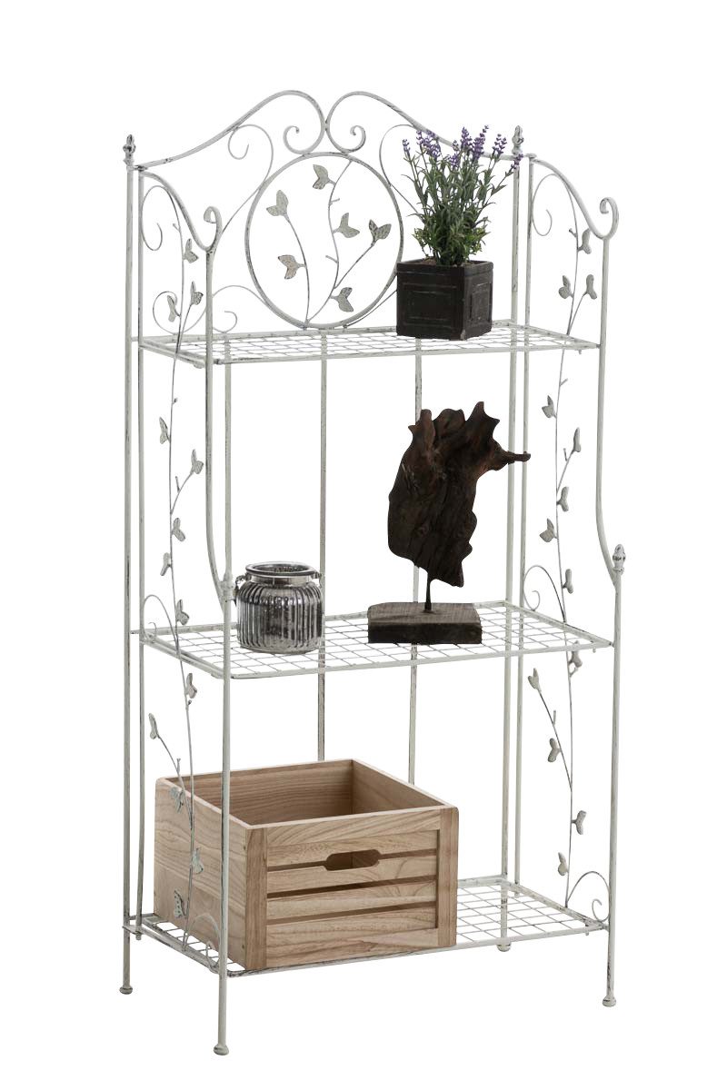 Eine Beschichtung (pulverbeschichtetes Eisen) macht dieses Regal sehr hochwertig und extrem langlebig. Die liebevollen Verzierungen im Landhausstil sehen sehr schön aus und verleihen einen antiken Charakter.