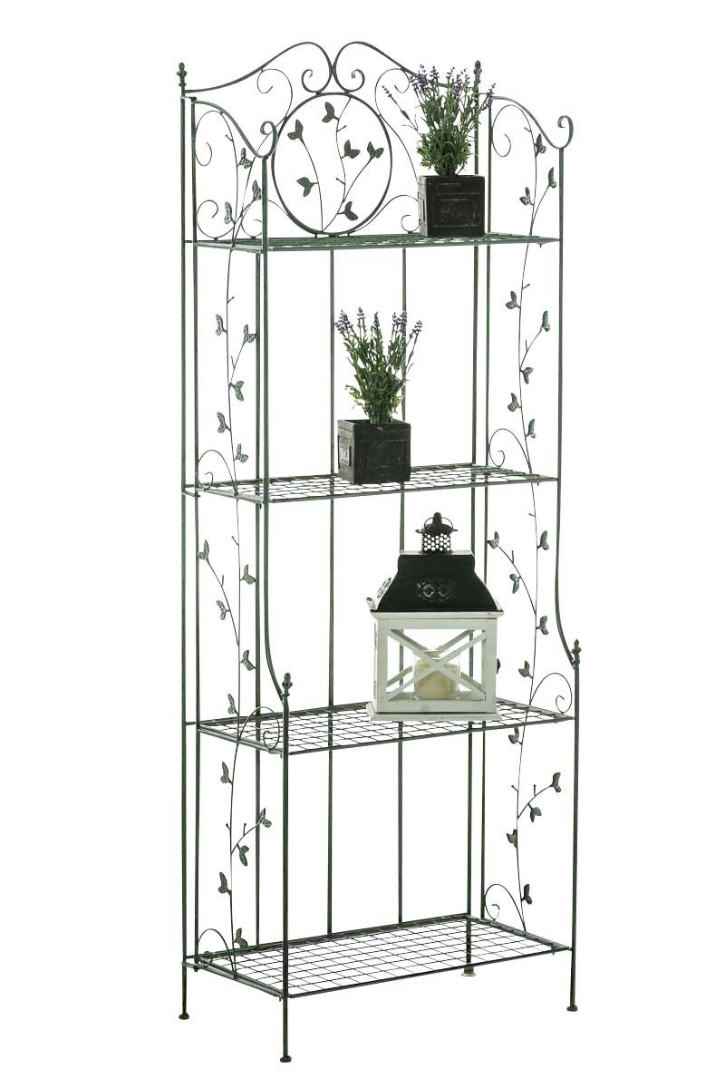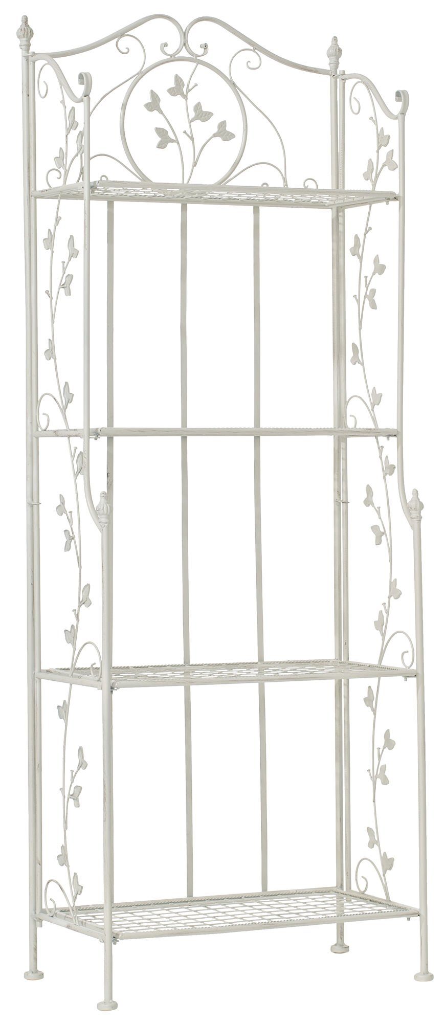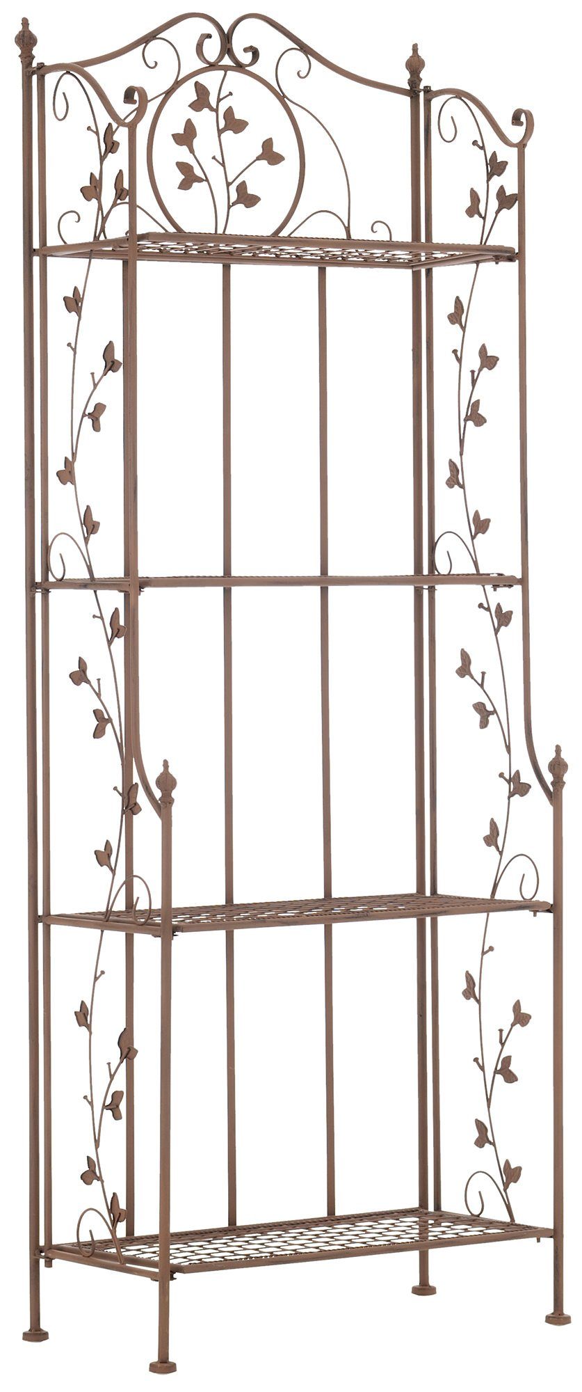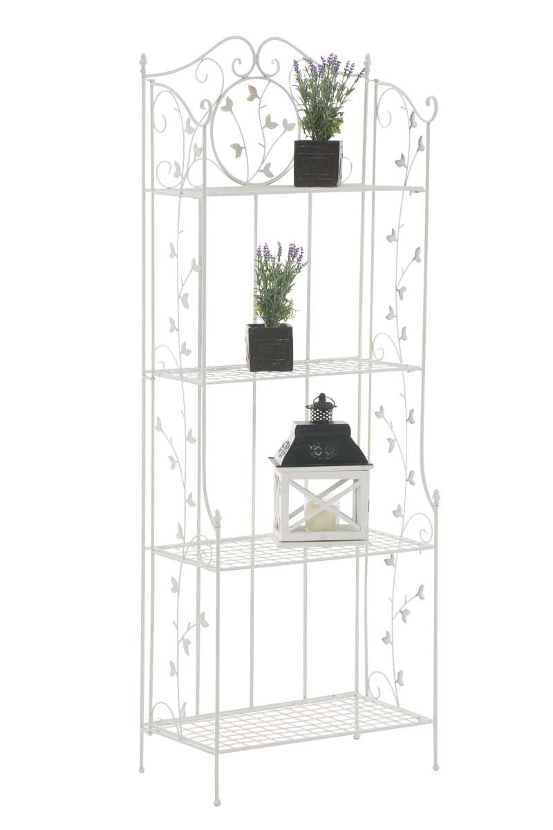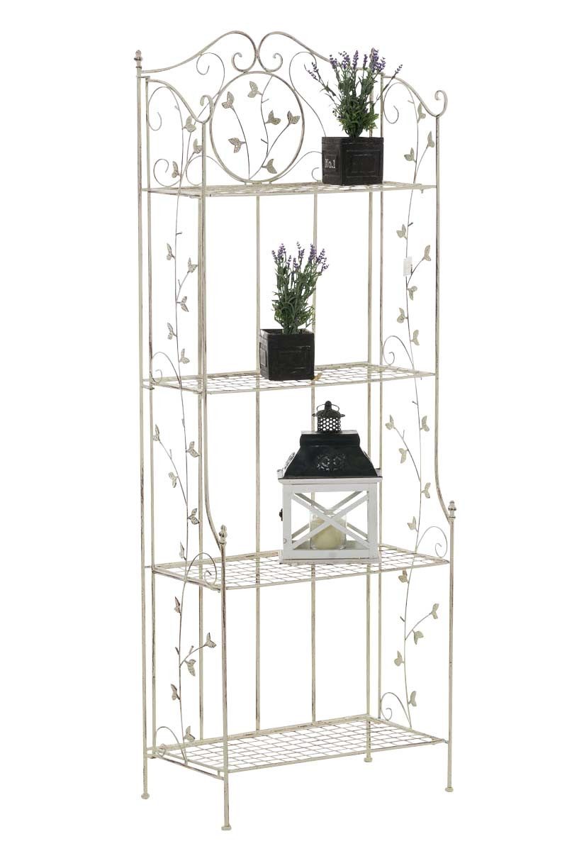 Eine Beschichtung (pulverbeschichtetes Eisen) macht dieses Regal sehr hochwertig und extrem langlebig. Die liebevollen Verzierungen im Landhausstil sehen sehr schön aus und verleihen einen antiken Charakter.