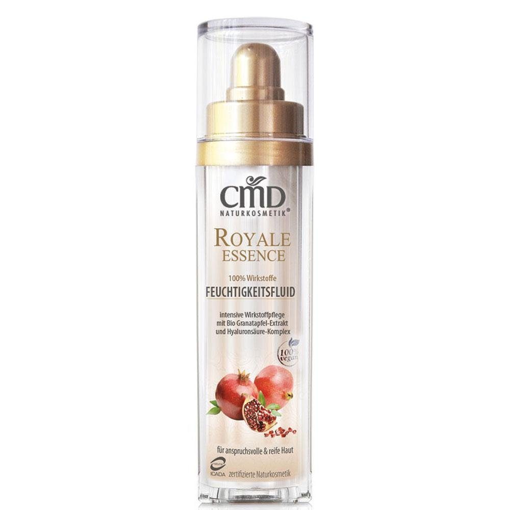 Diese zarte Wirkstoffpflege mit kostbaren Bio Naturölen und Bio Granatapfel-Extrakt reaktiviert die Jugendlichkeit Ihrer Haut, stärkt sie und schützt sie vor schädlichen Umwelteinflüssen. Antioxidantien statten die Haut mit einem Schutzschild gegen vorzeitige Hautalterung aus. Trockenheitsfältchen werden durch den hochkonzentrierten Hyaluronsäure-Komplex weichgezeichnet und Ihre Haut erhält neue Elastizität. Dieses Fluid ist aufgrund der angenehm leichten Textur bestens als Make-Up Grundlage geeignet. Als regenerierende Hautpflege für die Nacht empfehlen wir die Royale Essence 24H Aufbaucreme. Als "Hyaluronkick" vor dem Verwenden der 24h Aufbaucreme empfehlen wir den Royale Essence Booster.