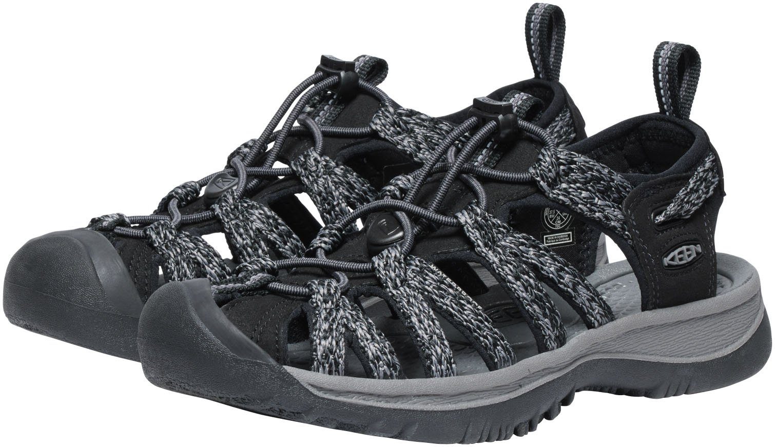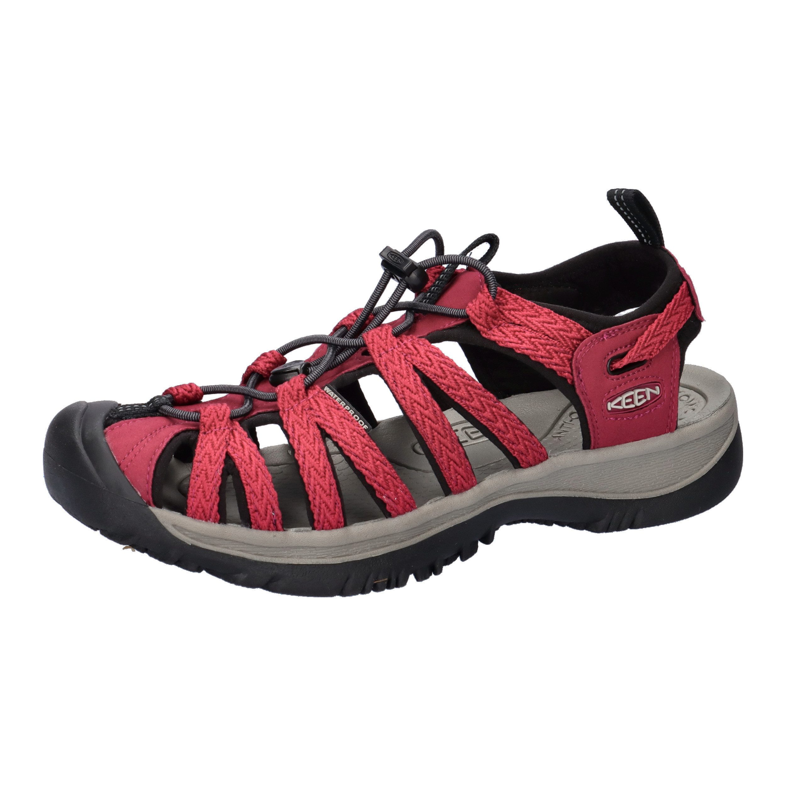 Die Sandale ist wie abgebildet und hat einen recht klobigen Vorderfussbereich. Fühlt sich beim Probelauf in der Wohnung bequem an, drückt nirgends (so wie oft die preiswerteren Alternatven)und gibt auch an der Ferse mit dem durchgehenden Riemen guten Halt- auch kein chemischer Geruch. Mit Stoppern individuell feststellbar und damit in der Weite zu regulieren. Für mich hauptsächlich zum Radfahren gedacht und mit dem aktuellen Rabatt auch preislich akzeptabel. Zum Wandern kann ich sie mir wegen der Plastik/ Gummi- Innensohle allerdings nicht gut vorstellen. Da wäre eine saugfähige Варианты sinnvoller. So allerdings „wassertauglich“ (habe ich mit einem anderen Modell von Keen bereits probiert).