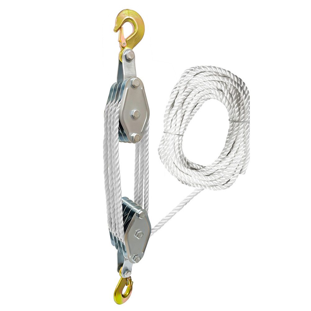 Zinkdruckguss-Flaschenzug (270° schwenkbar) mit 2t Traglast für schwere Installationen. Professionelle Hebevorrichtung aus ZnAl4Cu1-Legierung und UV-beständigem PE-Seil. Die Kugelgelagerten Edelstahl-Rollen reduzieren die Zugkraft um 70% – ideal für Klimaanlagen-Montage und Maschinen-Einbau. Inkl. Sicherheitshaken mit Ratschnverschluss und Wandmontageplatte Lasten bis 2000 kg.