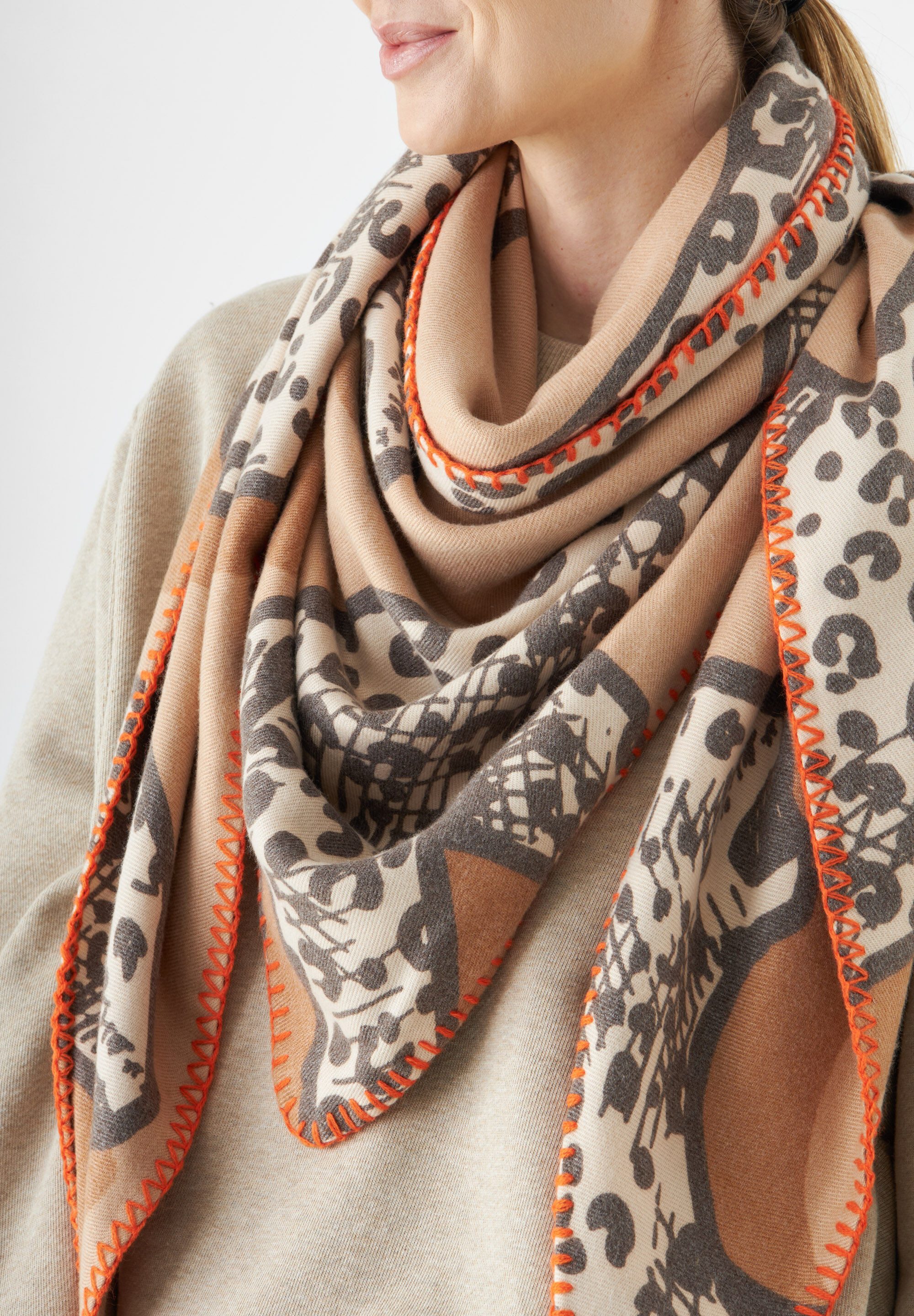 Dieses Dreieckstuch ist im angesagten Animal-Look mit dekorativen Leoparden allover bedruckt. Das Triangle-Tuch aus unserer weichen #10 CASHMERE TOUCH-Qualität kann schon an den ersten kühlen Tagen als stylische Alternative zu Jacken oder Mänteln getragen werden. Im kalten Winter macht es dein Outdoor-Outfit warm und cosy. Natürlich kannst du es auch drinnen als kuscheligen Wärmespender nutzen.