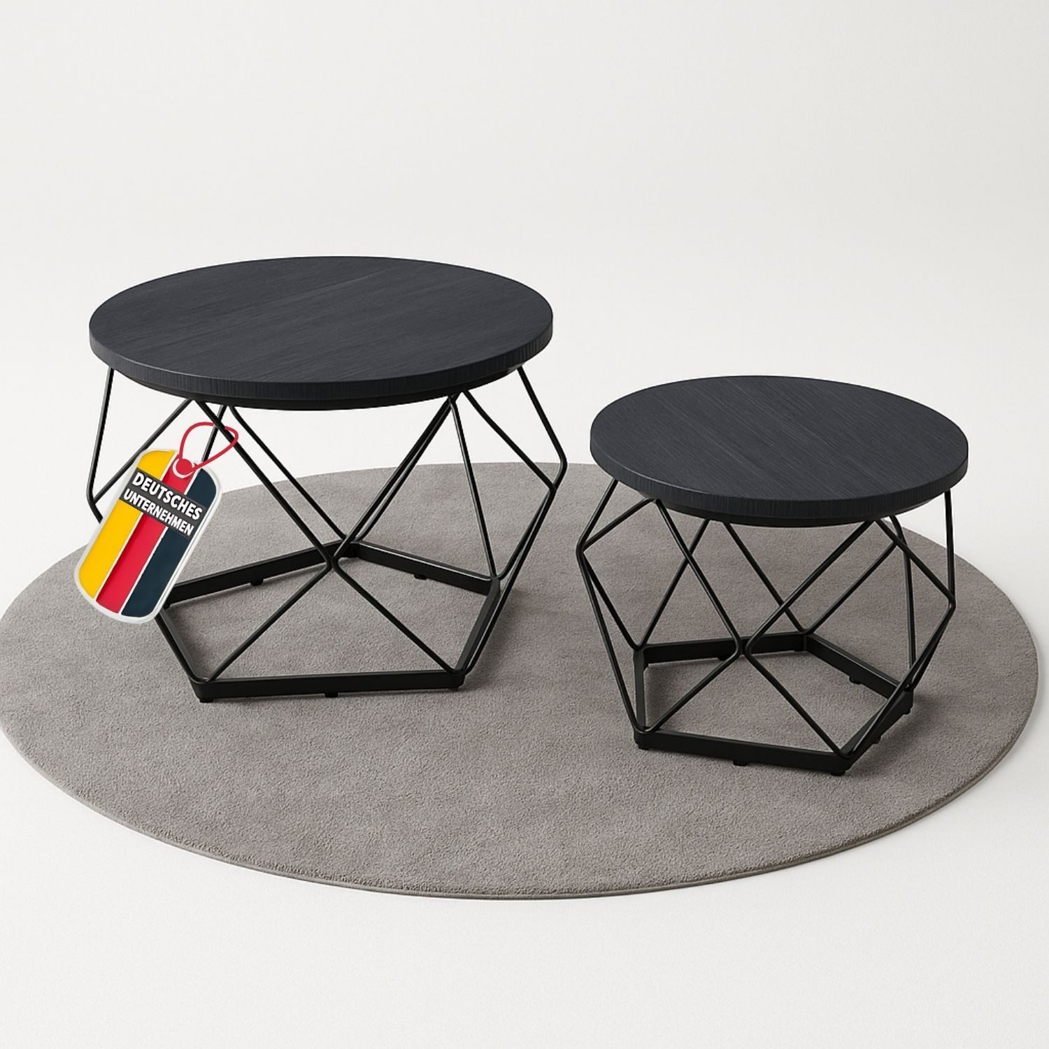 Das Coemo Couchtisch Duett 2er Set kombiniert modernes Industriedesign mit natürlicher Eleganz und wird zum vielseitigen Hingucker in Ihrem Zuhause. Mit runden Tischplatten in warmer Holzoptik oder elegantem Schwarz und einem filigranen Metallgestell im geometrischen Look bringt es zeitlosen Stil und Funktionalität in jeden Raum. Die beiden unterschiedlich großen Tische sind besonders platzsparend. Ob zusammen als dekoratives Ensemble im Wohnzimmer oder einzeln als Beistelltische, Nachttische oder Balkontische – dieses Set passt sich flexibel an Ihre Bedürfnisse an. So schaffen Sie ein harmonisches Wohngefühl, das gleichermaßen praktisch wie stilvoll ist.