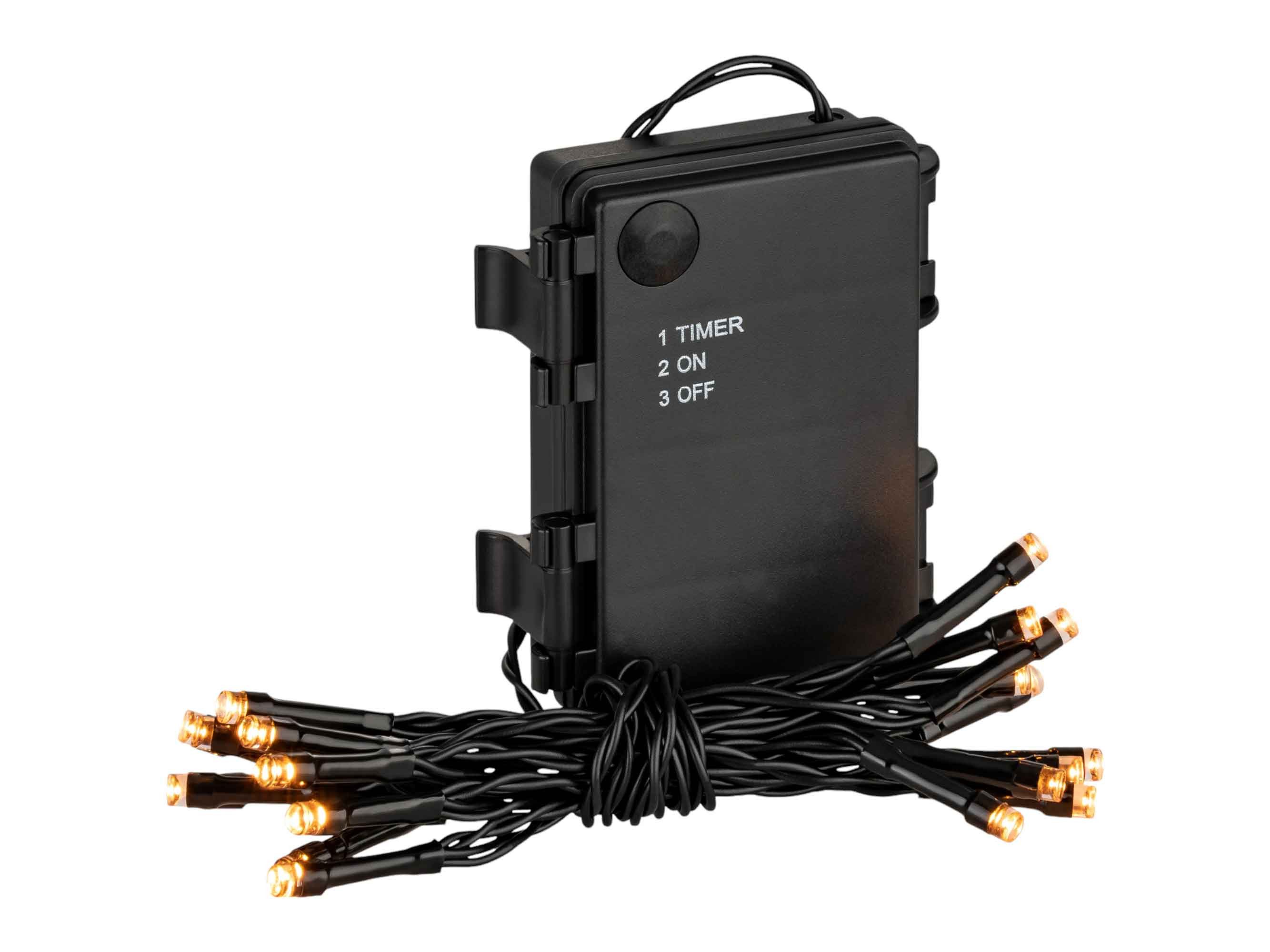 Ausstattung | 6/18h Timer schwarzes Kabel IP44 Batteriebox 50cm Zuleitung 3mm LEDs |