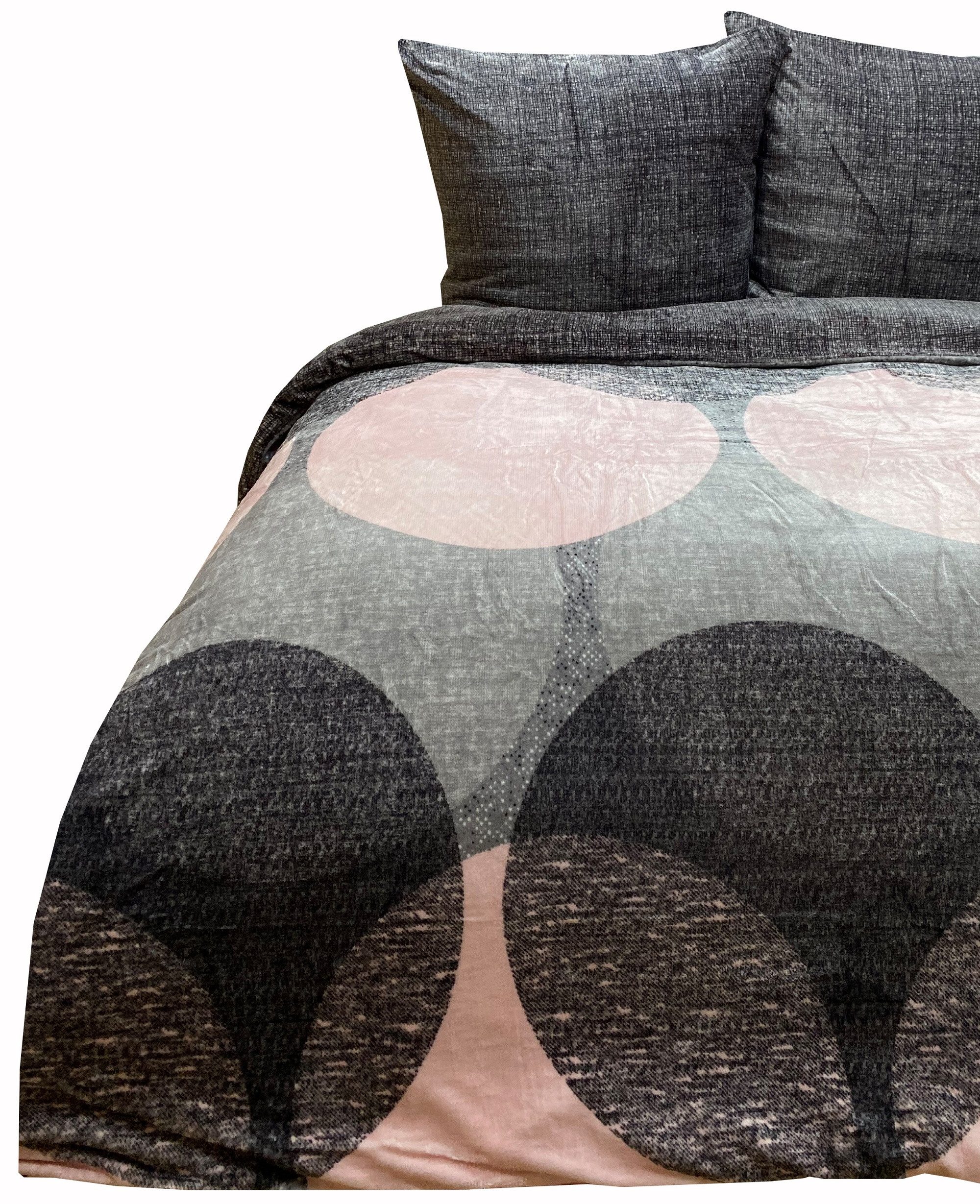 Diese edle Plüschbettwäsche vereint Stil und Komfort und ist ideal für kalte Wintertage. In der Farbkombination Anthrazit und Rosa sorgt sie für eine gemütliche Atmosphäre und ist ein echter Hingucker im Schlafzimmer. Die große, dezente Kreisstruktur auf der Vorderseite verleiht dem Design eine moderne und gleichzeitig beruhigende Optik.