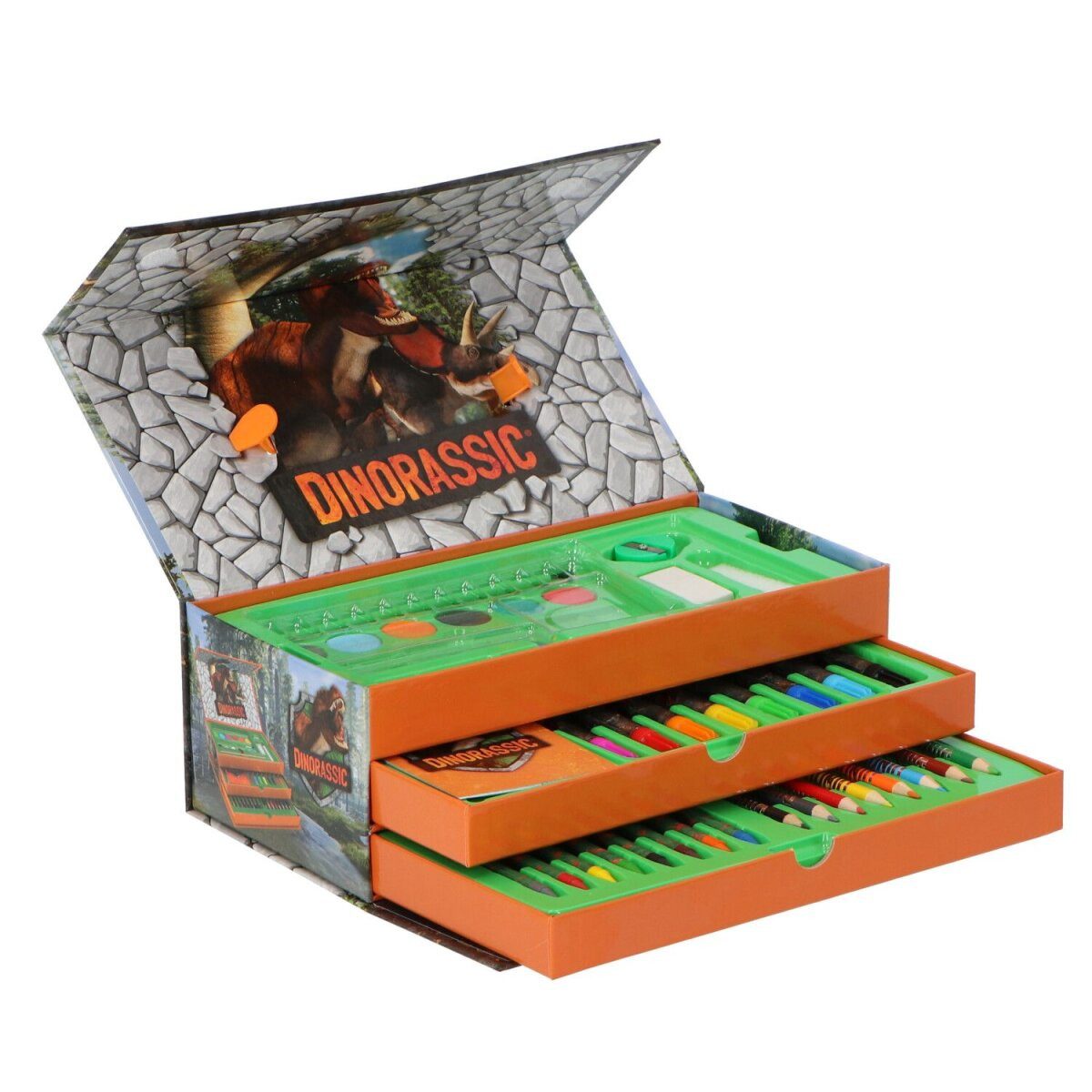 Lebendig und voller kreativer Möglichkeiten – der Dinorassic Malkoffer ist das ultimative Bastelset für junge Künstler. Mit einer reichhaltigen Auswahl an Farbstiften und Malutensilien ausgestattet, lädt dieses Set Kinder dazu ein, ihre Fantasie zu entfalten und bunte Abenteuer zu gestalten. Ob zu Hause oder unterwegs, die robuste Box hält alles bereit, was Kinder für Stunden voller Spaß und künstlerischer Entdeckungen benötigen. Perfekt geeignet, um die feinmotorischen Fähigkeiten zu fördern und gleichzeitig die Vorstellungskraft zu beflügeln, bietet der Dinorassic Malkoffer eine unterhaltsame Möglichkeit für Kinder, ihre Welt auf Papier zum Leben zu erwecken.