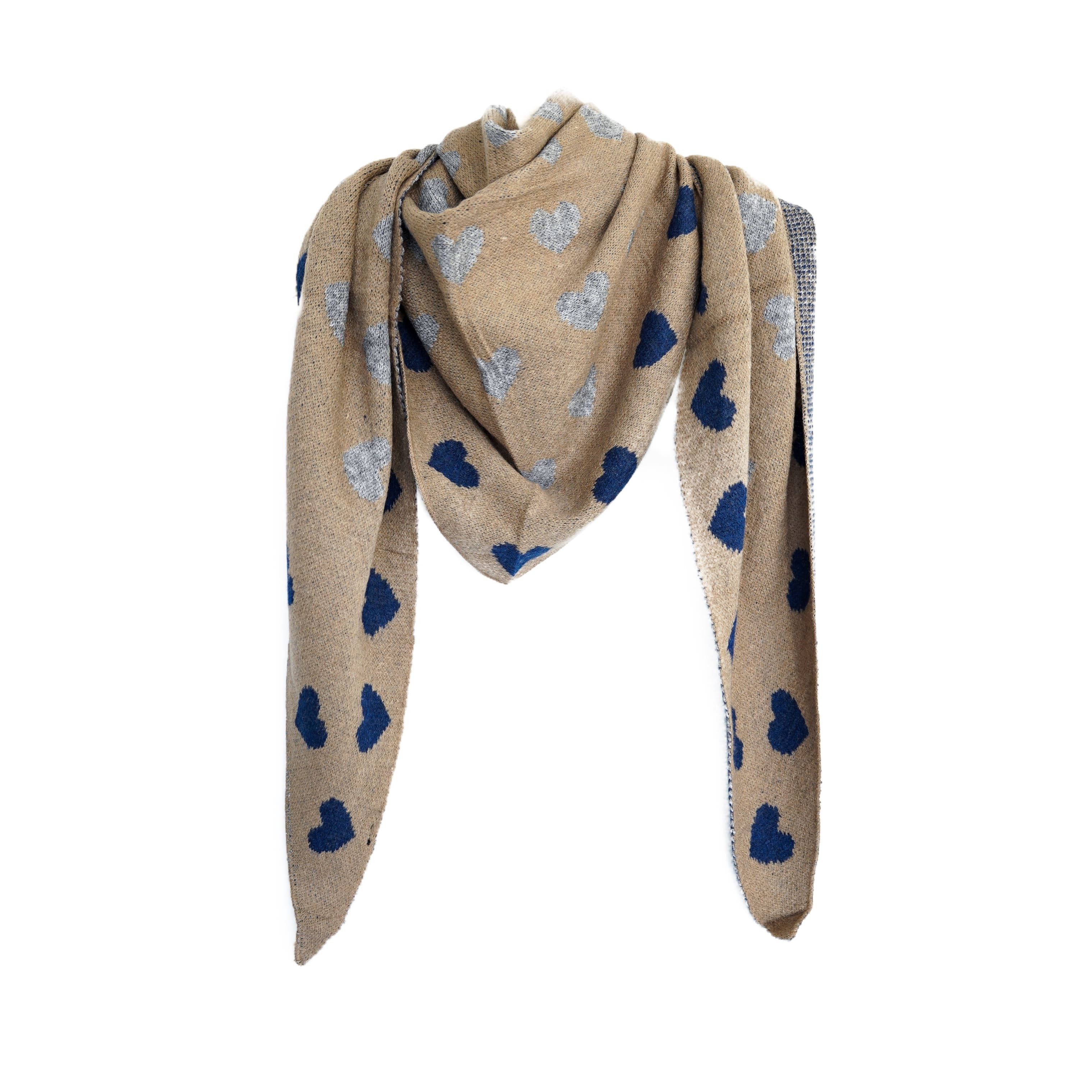 Dieser liebevoll designte Dreiecksschal mit Herzmuster ist das perfekte Accessoire für kühle Tage. Sein verspieltes Muster und die hochwertige Materialmischung sorgen für Wärme und Stil gleichermaßen. Ideal für Damen, die ein modisches Statement setzen möchten.