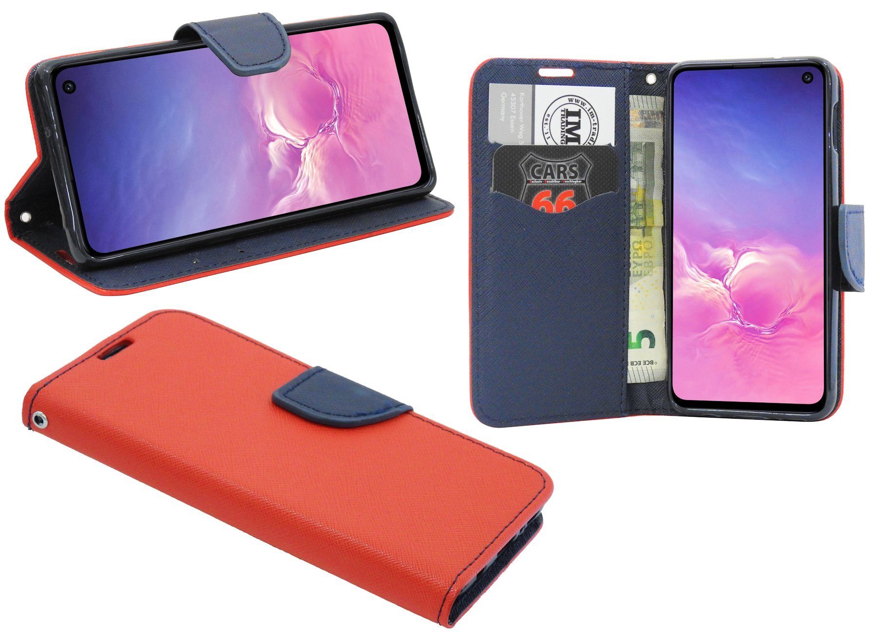 1x Bookstyle-Tasche für das Samsung Galaxy S10e G970F in Rot-Blau ( 2-Farbig )