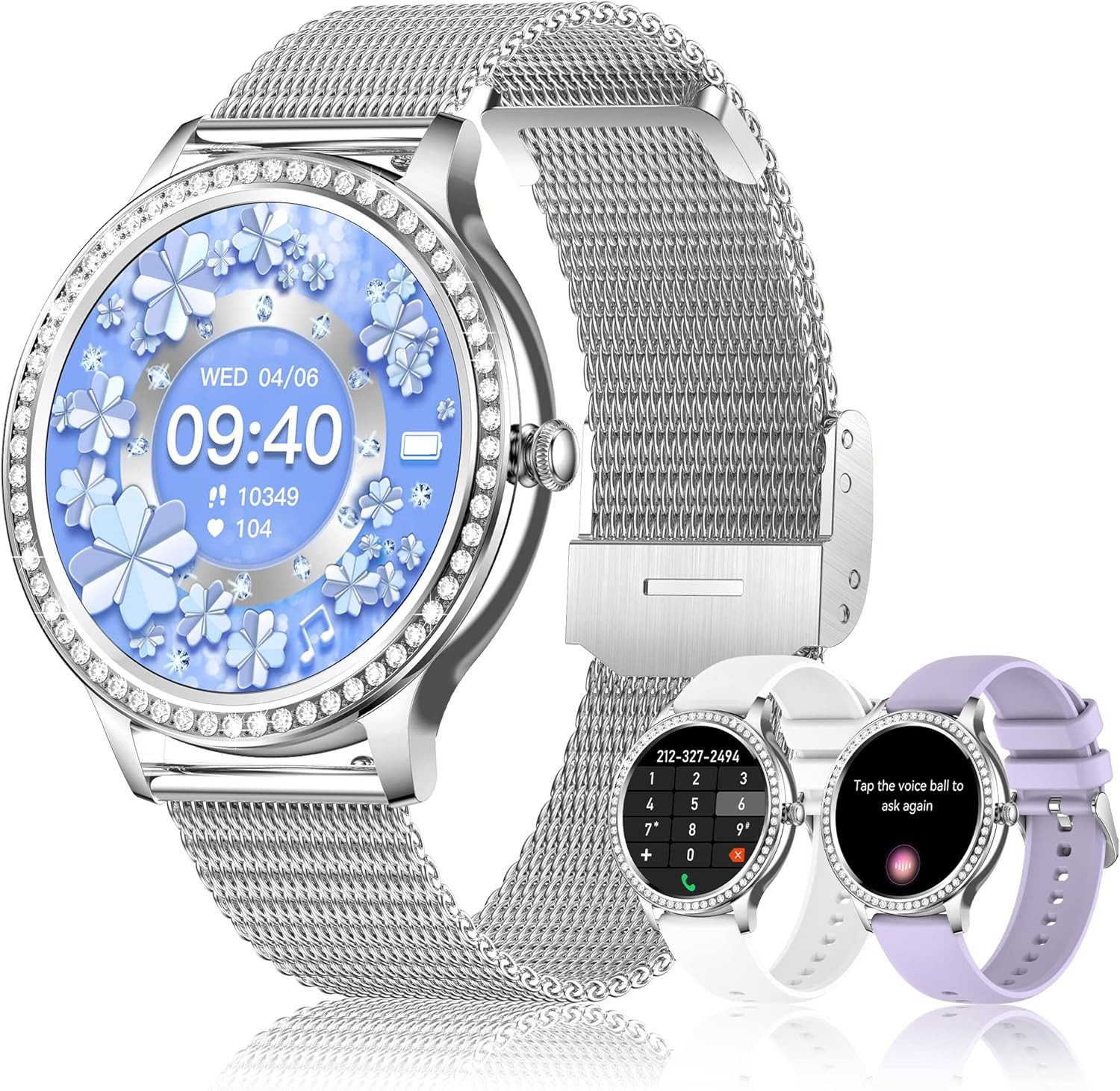 Zusatzfunktionen | Damen Smartwatch mit Telefonfunktion Smartwatch Damen WhatsApp Nachrichten Fitness Uhr Damen mit Blutdruckmessung Smartwatch Damen AMOLED Display groß Smartwatch Damen kompatibel Android iOS Elegante Damen Uhr mit Edelstahlarmband Smartwatch Damen Anrufe und Benachrichtigungen Smartwatch Damen Zykluskalender und Erinnerung Smartwatch Damen wasserdicht IP67 Multifunktionale Smartwatch für Frauen Smartwatch Damen Fitness und Schlaftracking Geschenkidee Damen Smartwatch modern |