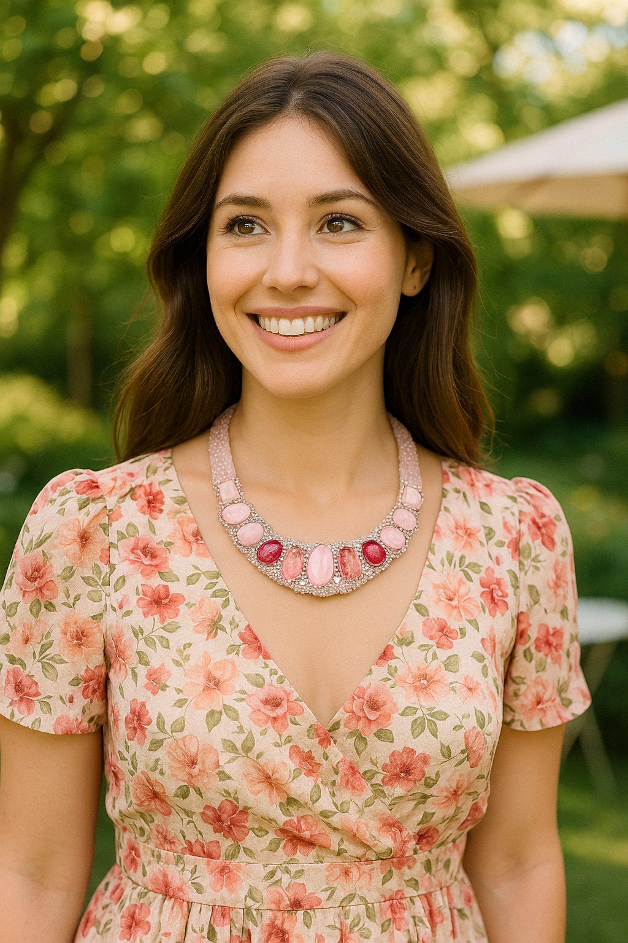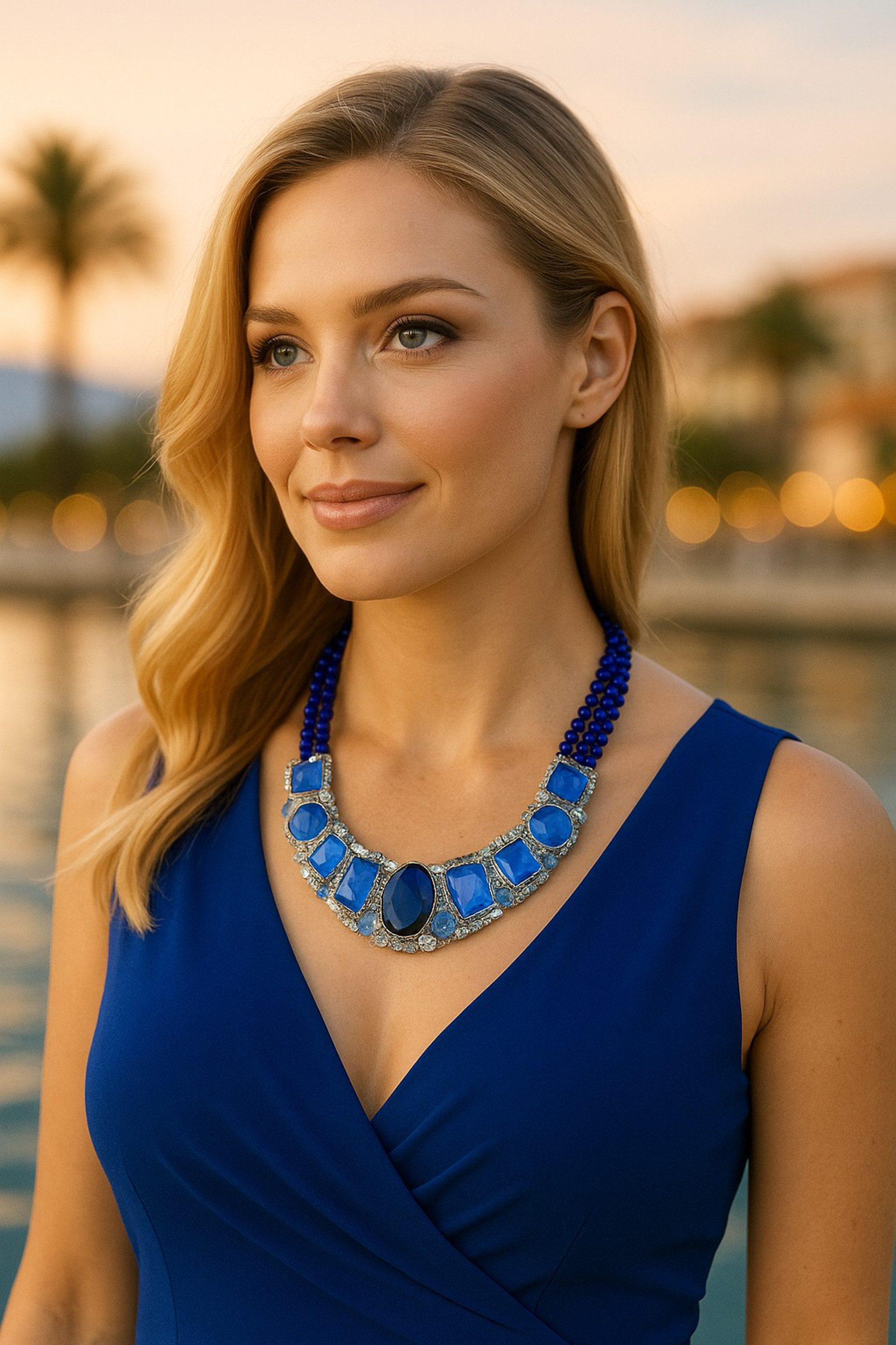 Ein echter Hingucker für dein Dekolleté: Diese kunstvoll gefertigte Kette kombiniert große, facettierte Glassteine mit funkelnden Glasperlen zu einem außergewöhnlichen Schmuckstück in modernem Design. Die harmonisch abgestimmte Farbvielfalt – wahlweise in edlem Pink-Silber oder intensivem Blau-Silber – lässt die Kette je nach Lichteinfall glamourös schimmern. Die Glaselemente sind mit filigranem Draht eingefasst und kunstvoll miteinander verwoben, was dem Collier eine luxuriöse, fast handwerkliche Ausstrahlung verleiht. Die gesamte Verarbeitung ist detailreich und hochwertig – ideal für besondere Anlässe oder als Statement-Piece im Alltag. Dank des verstellbaren Verschlusses (45?cm + 6?cm Verlängerungskette) passt sich die Kette flexibel an dein Outfit und deinen Look an. Ob zur schlichten Bluse oder zum eleganten Abendkleid – dieses Collier bringt Farbe, Glanz und Raffinesse in deinen Stil. Mit einem Gewicht, das angenehm tragbar ist, und Materialien, die optisch edel wirken, bleibt die Kette dennoch alltagstauglich und unkompliziert zu kombinieren.
