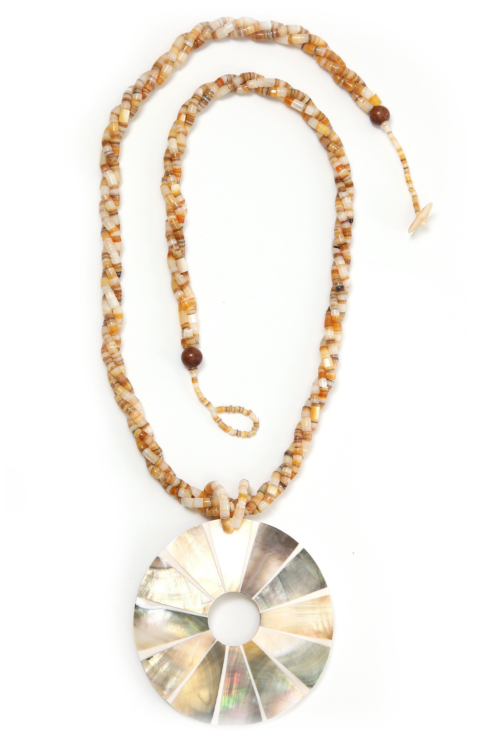 Jede Kette ist ein handgefertigtes Unikat, keine ist wie die Andere, denn jedes Einzelstück ist einzigartig . Der Hals besteht aus vielen kleinen Muschelscheiben in gedrehter Form, der opulente Anhänger ist aus Kunstharz, auf diesem befinden sich unterschiedliche Muschelteile. Die Hinwendung zur Natürlichkeit und zur traditionellen Handwerks- und Handarbeitskunst zeichnet diese einzigartige Kette aus. Handarbeit aus Naturmaterialien: Abweichungen in Form, Farbe und Struktur möglich.