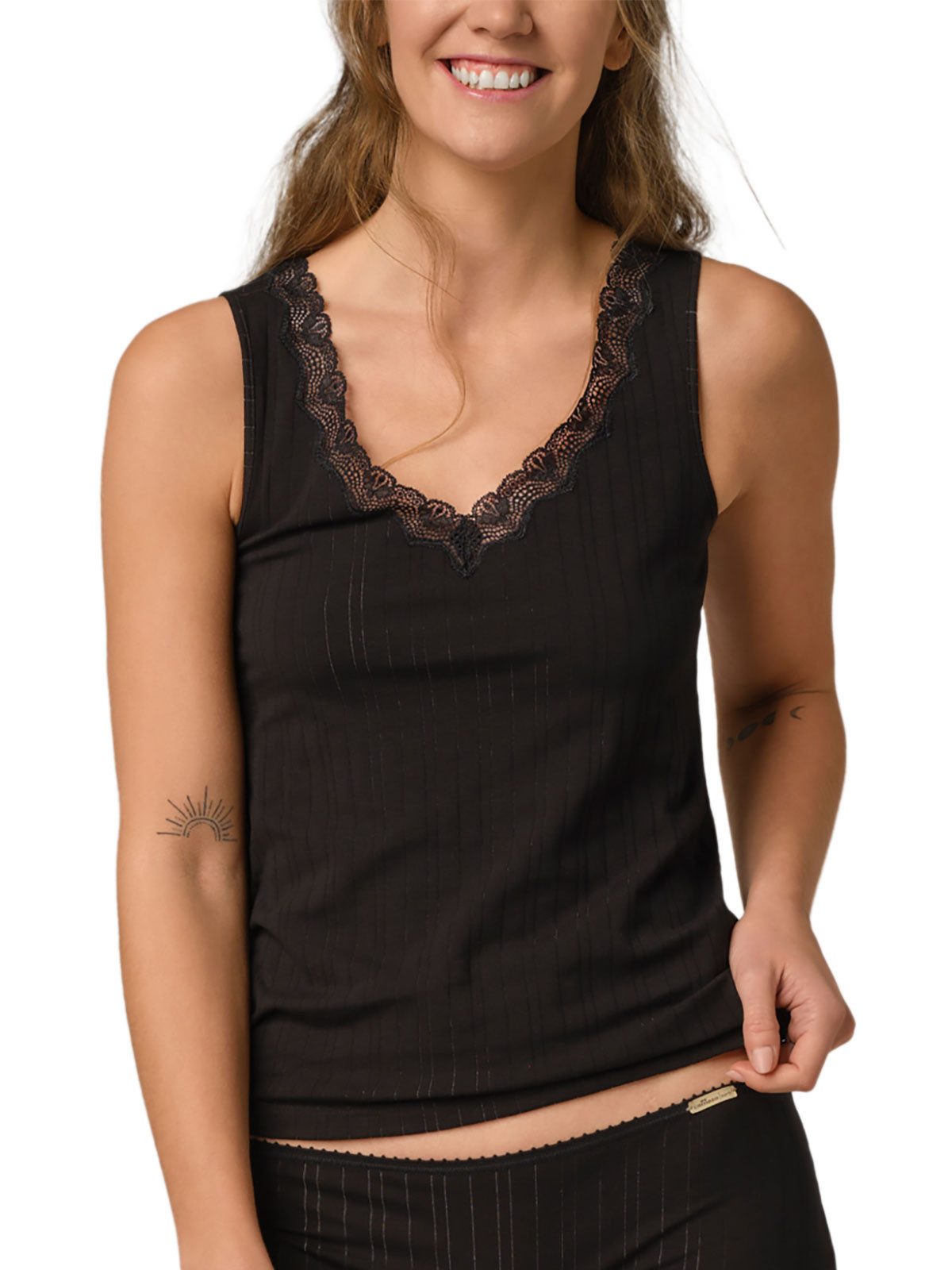 Damen Unterhemd Achselträger von der Marke Comazo aus der Serie 2778. Besondere Merkmale des Artikels sind Feine Spitze am vorderen Ausschnitt, Single Jersey, Leicht Taillenformend, In Streifenoptik und Mit Seitennähten. Seit 1884 produziert Comazo Unterwäsche für die ganze Familie, sie bieten zeitlose Wäsche-Klassiker und auch modische Design. Immer mit hochwertigen ausgewählten Materialien für den unvergleichbaren Comazo Tragekomfort.