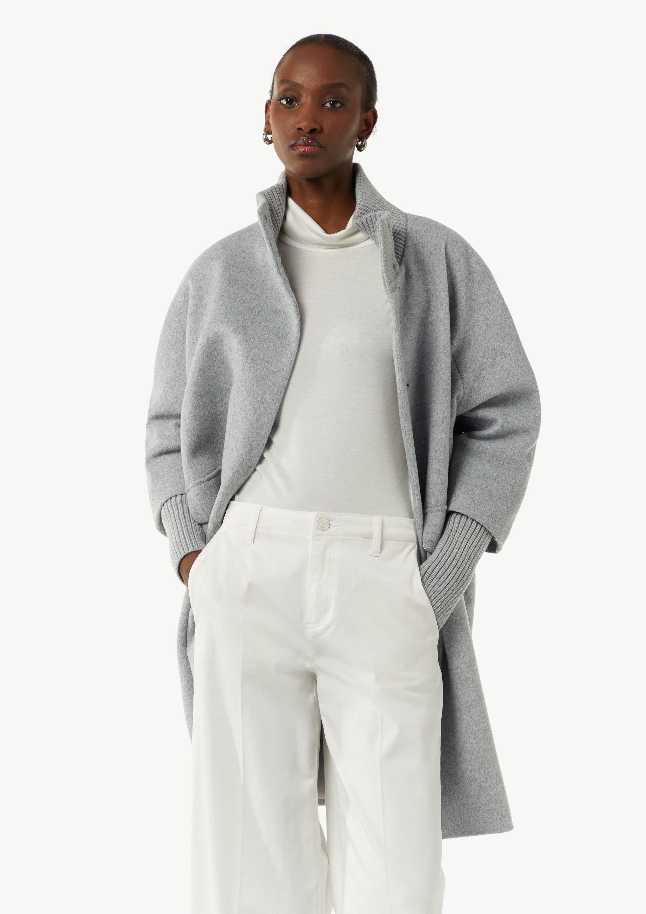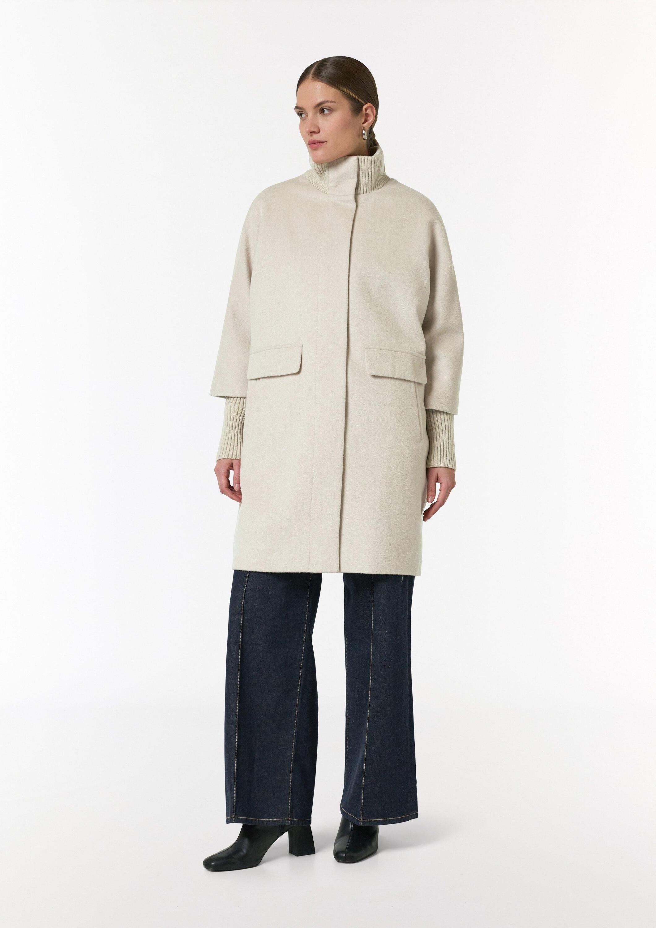 Schnittform Длина | Wollmantel mit geripptem Kragen und Ärmeln |
